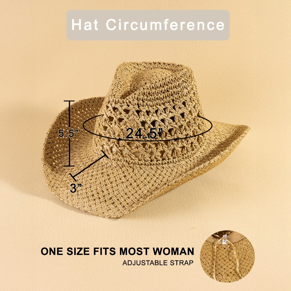 • Effortlessly elevate your outfit, this cowboy hat reveals an intricate straw weave design. A chic and sophisticated cowboy hat that's perfect for dressing up or down. Available in BEI, KH. This item is sold in packs of 1.