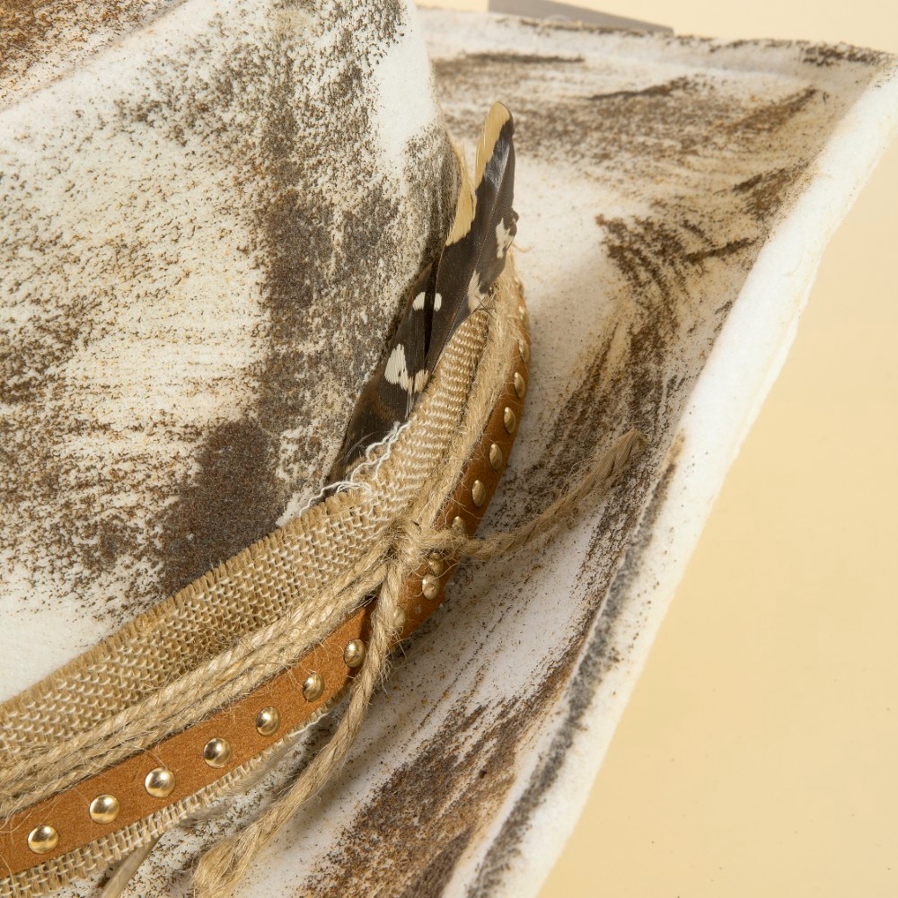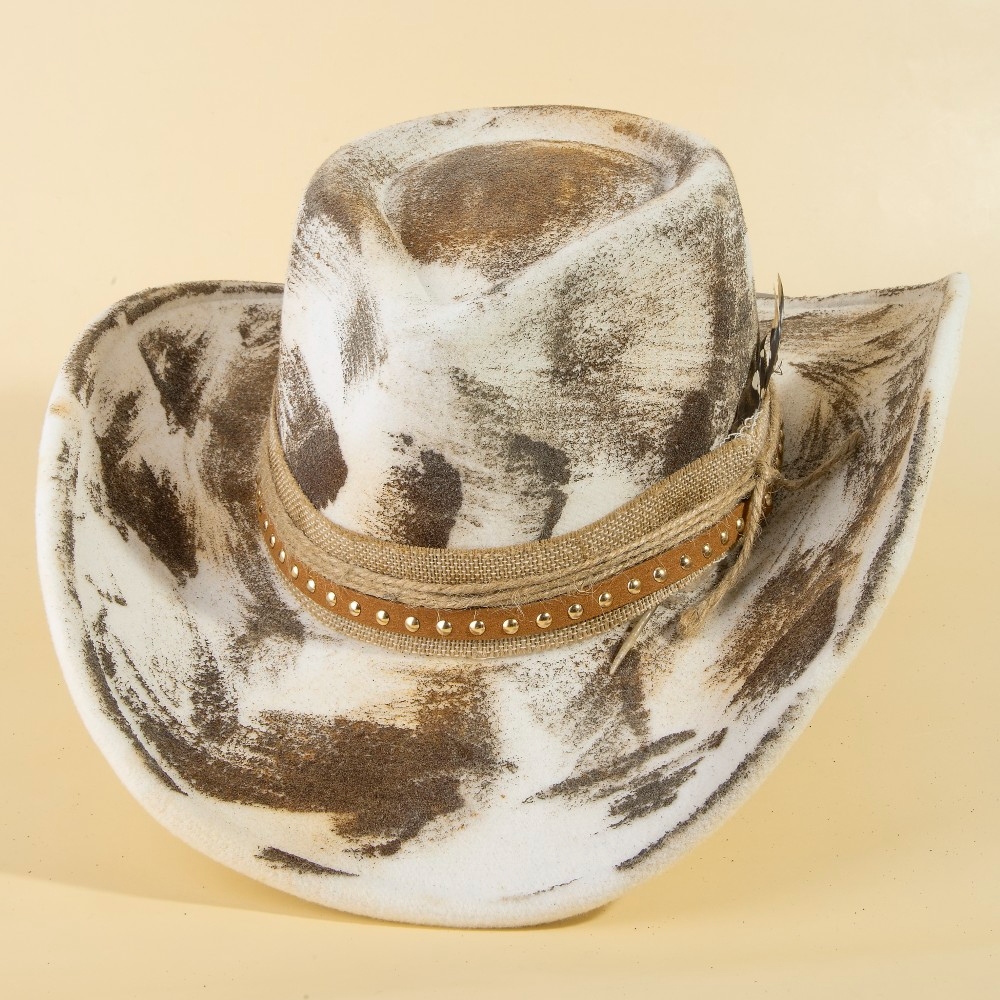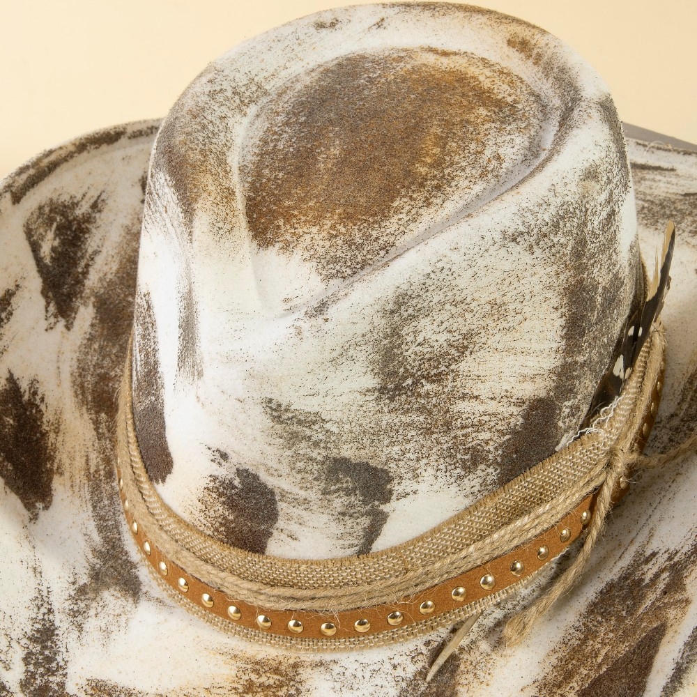 Add some edge to your look, this cowboy hat features an exceptional studded strap distressed western design. A stylish cowboy hat that's perfect for complementing your favorite outfit. Available in MULTI. This item is sold in packs of 1.