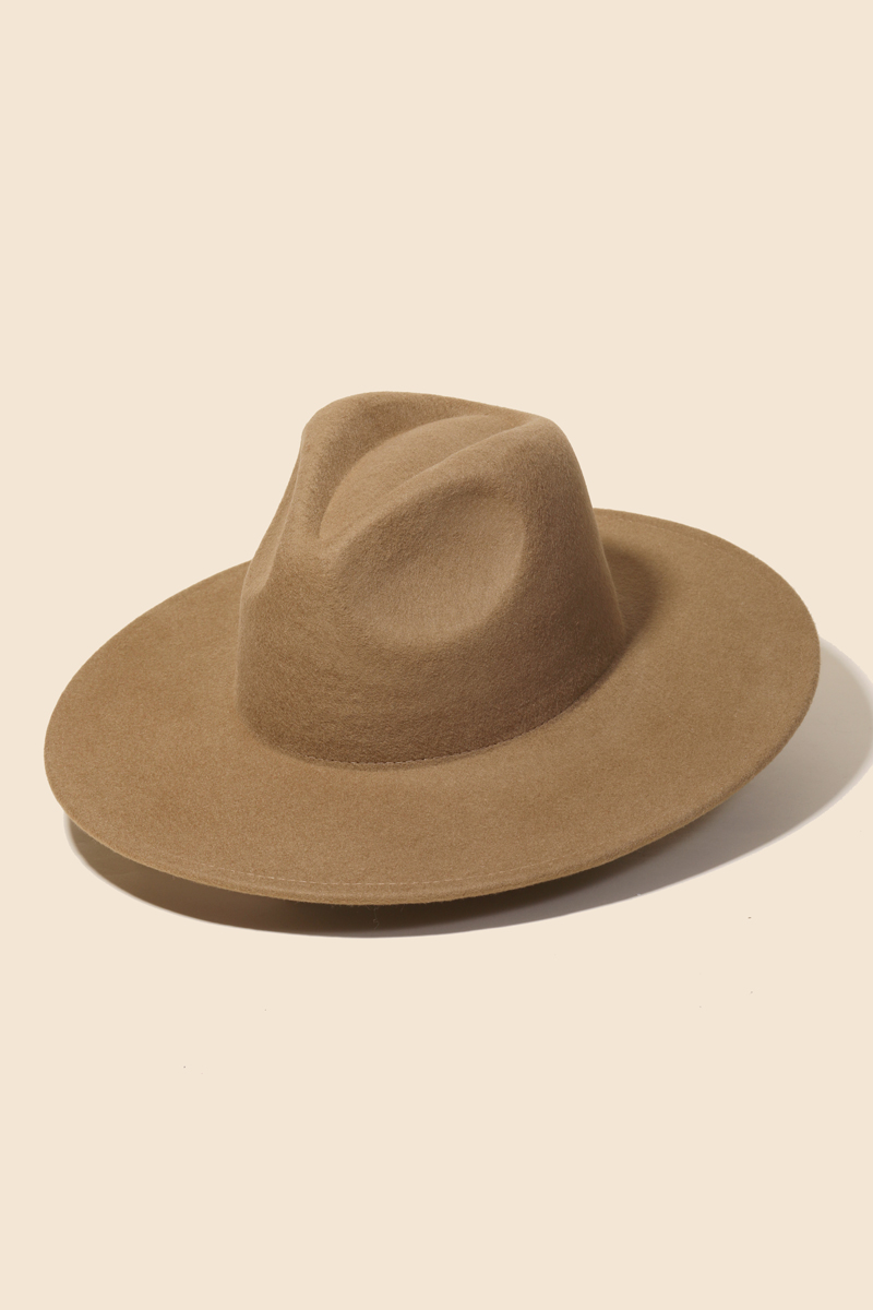 - This popular giftable hat that features a beautiful wool felt flat brim cowboy hat design. Perfect as a gift for a loved one! This is great to wear during almost any occasion, and can suit casual or formal events perfectly.