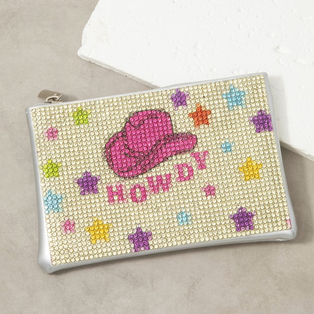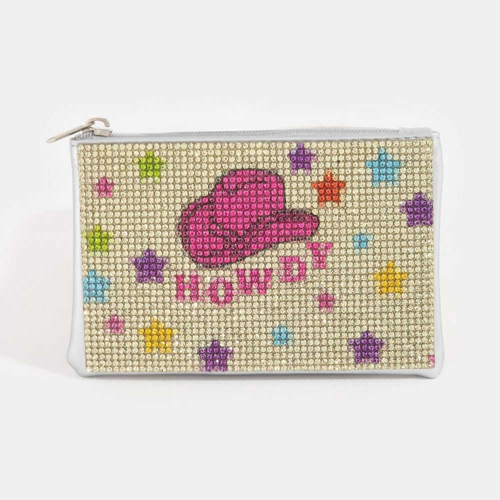 Perfect for any occasion, from casual to formal, this coin purse carries a charming howdy pave design. Elevate your fashion statement with this versatile coin purse, adding a touch of glamour to your everyday look. This item is sold in packs of 1.