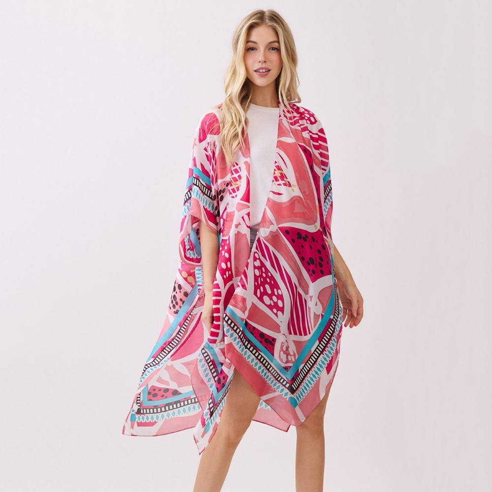 • A versatile piece that can be dressed up or down, this kimono introduces an exceptional abstract botanical print design. Add a touch of glamour to your wardrobe with this versatile kimono, perfect for enhancing the elegance of any look. Available in BL, GN, PK. This item is sold in packs of 1.