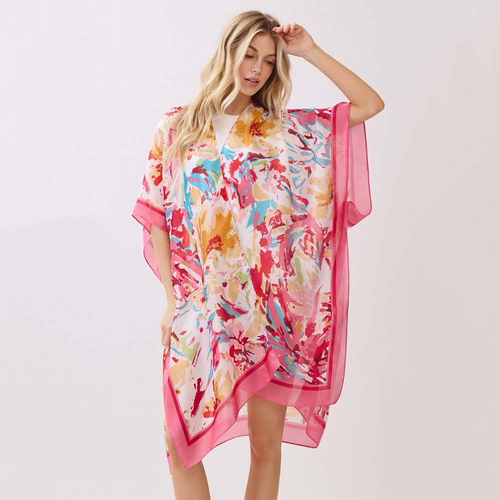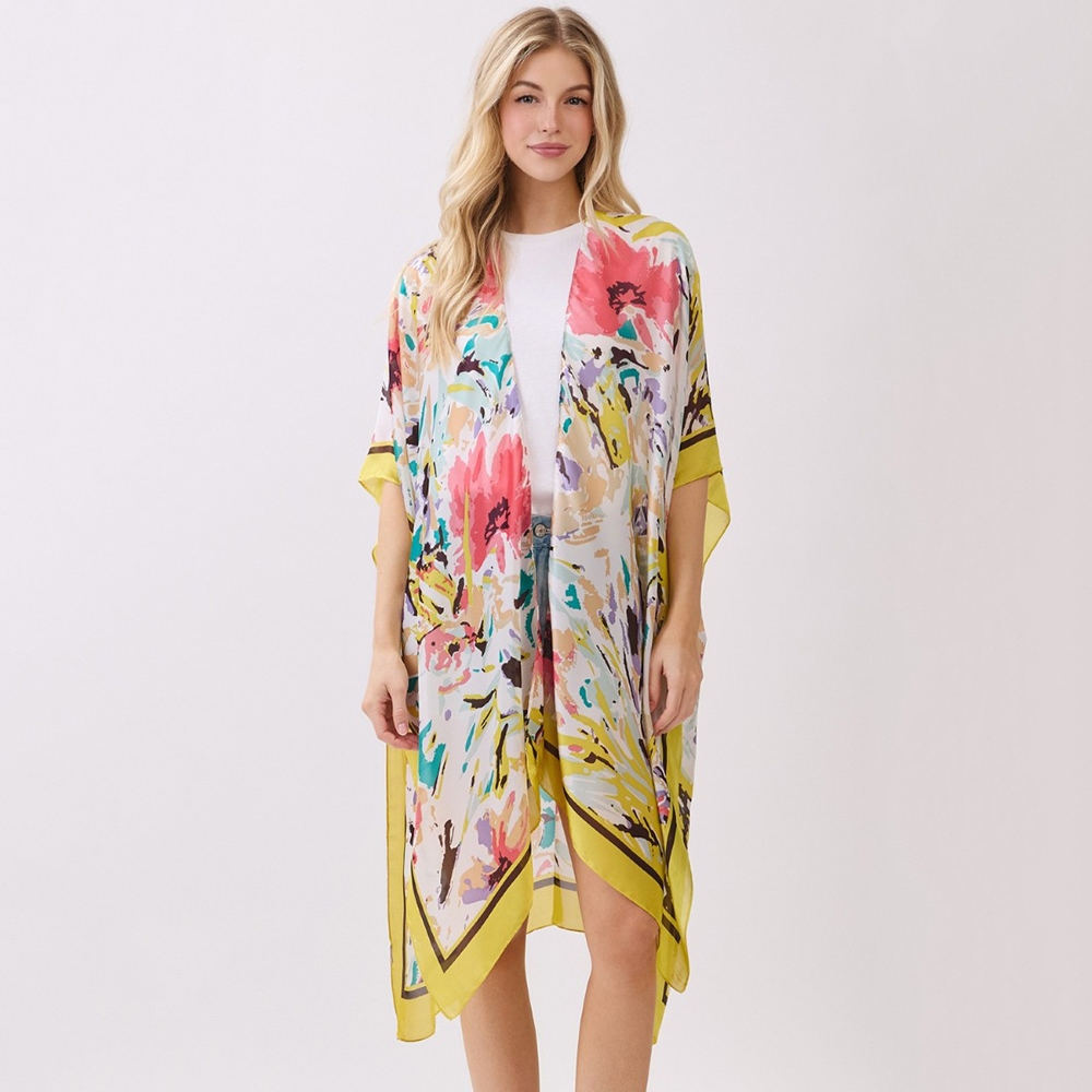 • This piece is the perfect way to add some glamour to your look, this kimono incorporates a remarkable abstract floral print design. Add a touch of glamour to your wardrobe with this versatile kimono, perfect for enhancing the elegance of any look. Available in BL, GN, PK, YE. This item is sold in packs of 1.