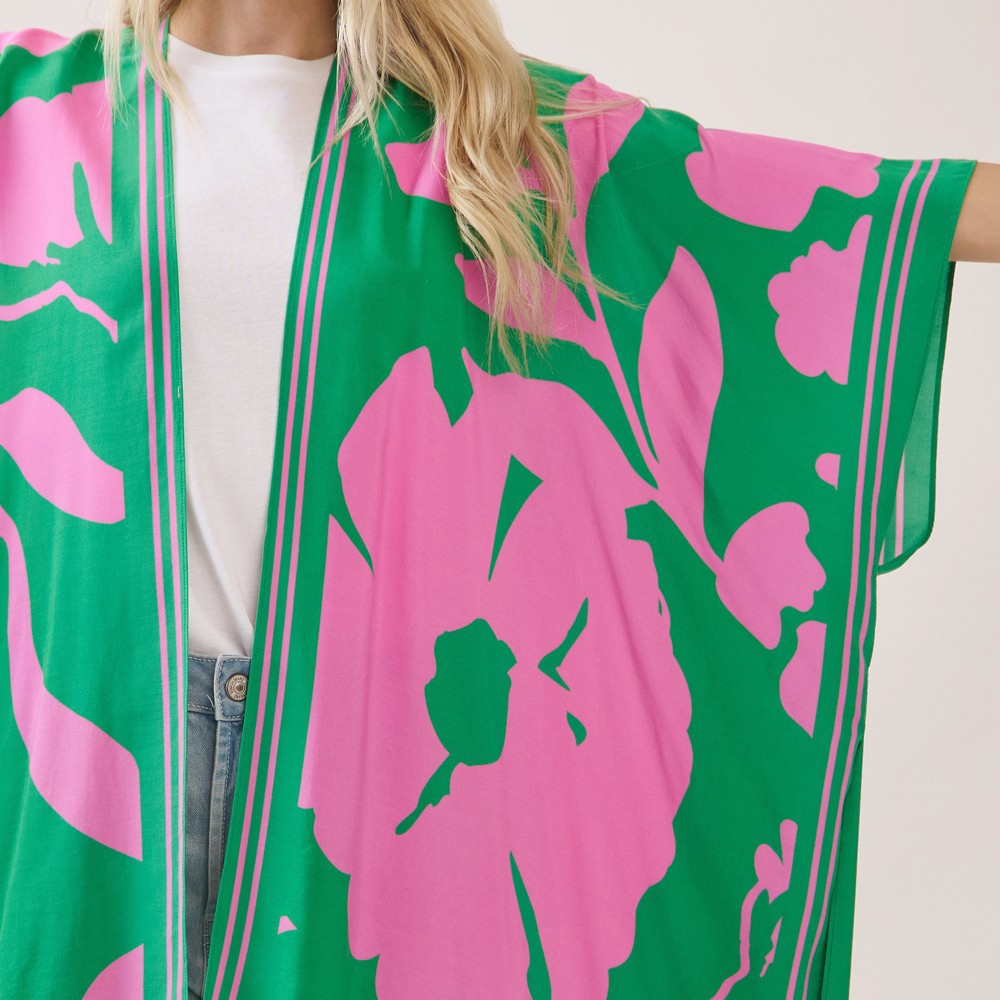 This piece is both timeless and on-trend, this kimono boasts a magnificent abstract flower design. Take your style to the next level by incorporating this versatile kimono, a key element in achieving a polished look. Available in PKGN. This item is sold in packs of 1.