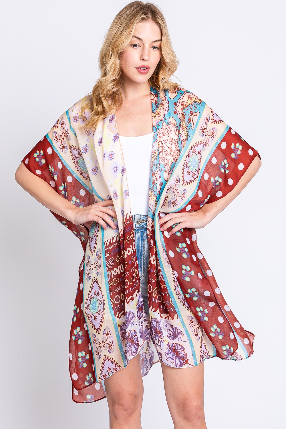 • Perfectly polished and endlessly versatile, this kimono features an exceptional boho flower print design. Achieve a perfect blend of style and sophistication with this versatile accessory, a fashion-forward choice for any occasion. Available in BK, BR and TP. This item is sold in packs of 1.