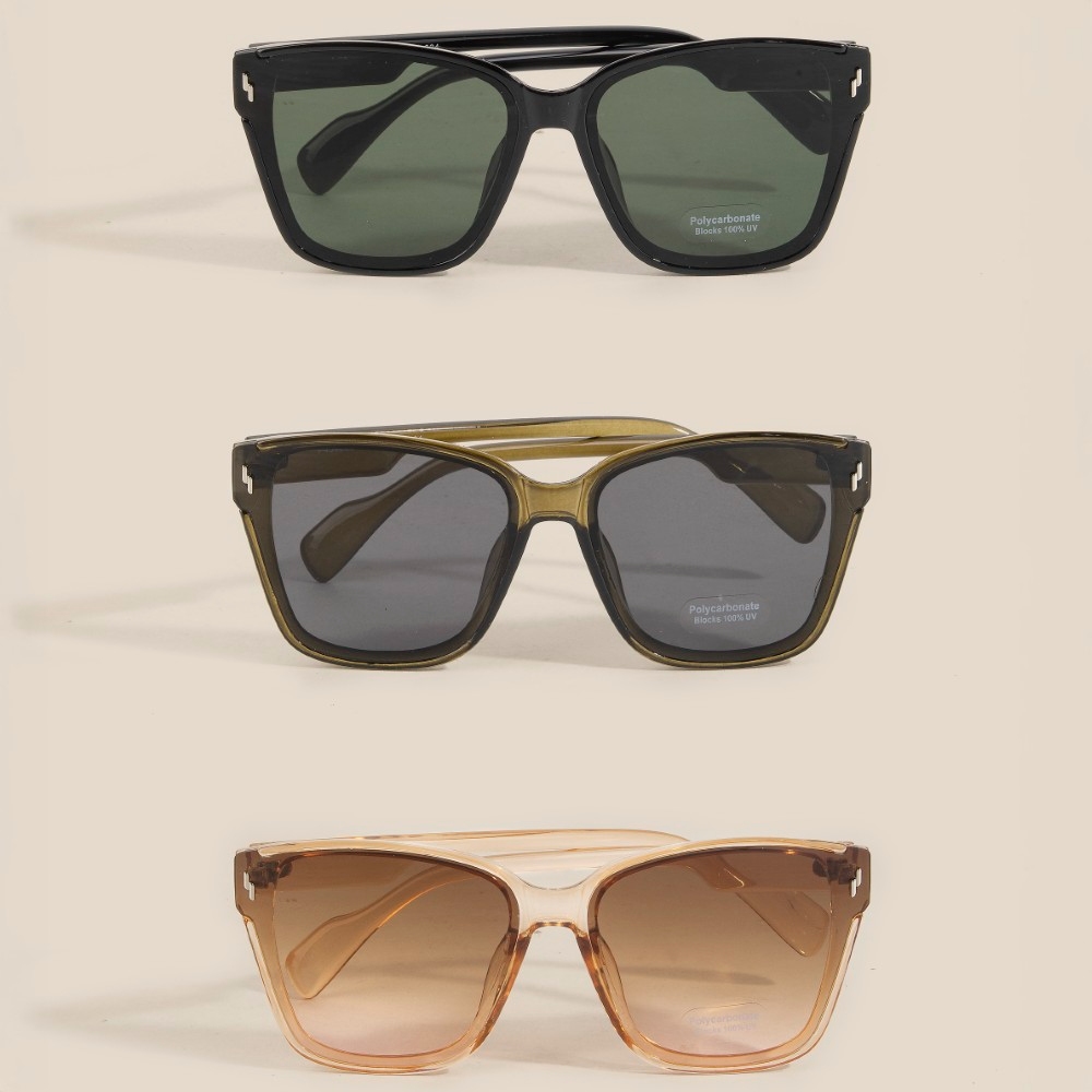 A must-have addition to any set of sunglasses collection, this set of sunglasses highlights a special large square frame sunglasses set design. Upgrade your fashion game with this versatile set of sunglasses, a timeless addition that complements any outfit seamlessly. Available in ASSORTED. This item is sold in packs of 12.