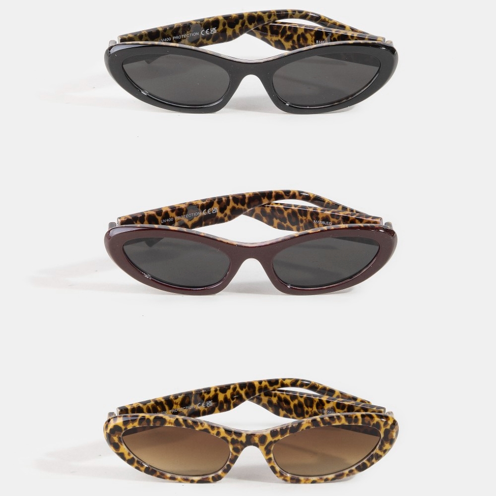• Sleek, modern, and always stylish, this set of sunglasses incorporates a flawless leopard print cat eye sunglasses set design. Unleash the potential of your wardrobe with this versatile set of sunglasses, ensuring a touch of elegance in every ensemble. Available in ASSORTED. This item is sold in packs of 12.