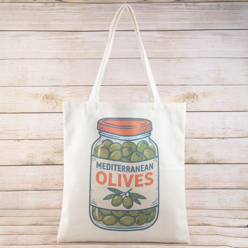 Perfectly versatile and endlessly stylish, this tote bag incorporates a remarkable mediterranean olives design. Perfect for dressing up or down, this versatile tote bag adds a touch of sophistication to any look. Available in MU. This item is sold in packs of 1.