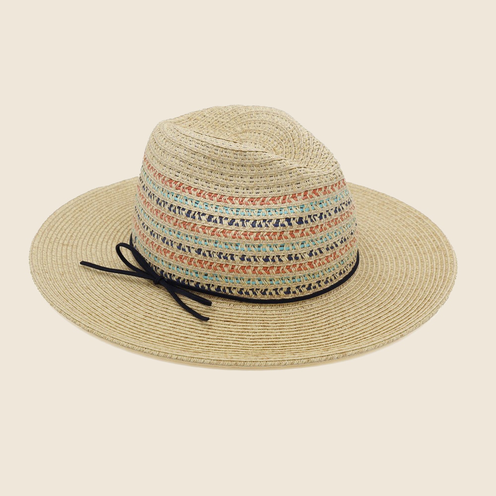 • A must-have for any fashion-forward individual, this fedora hat evokes a captivating multicolor woven straw design. Redefine your wardrobe with this versatile fedora hat, a timeless addition that brings an air of sophistication to any look. Available in NA. This item is sold in packs of 1.