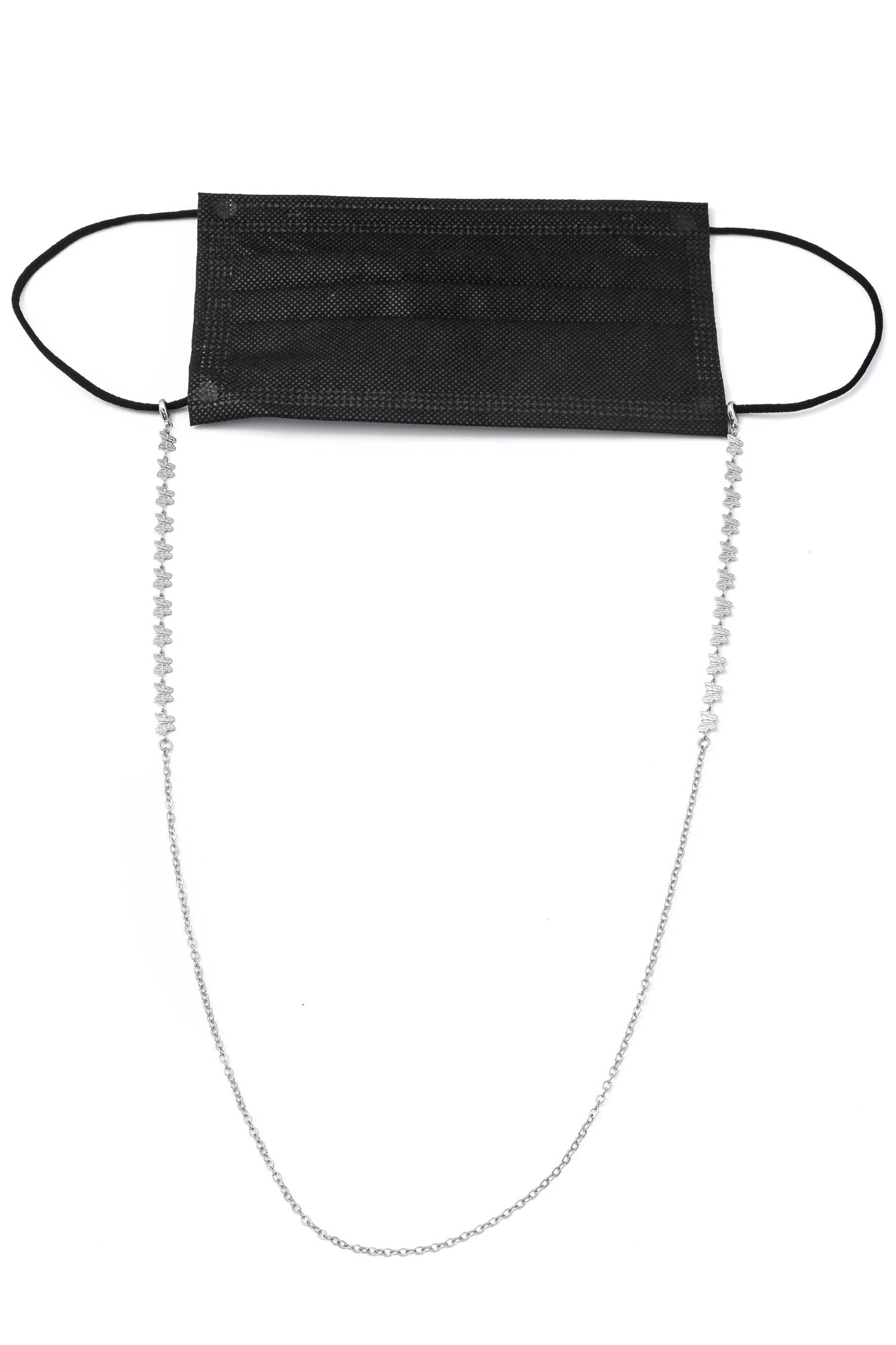 This face mask has a metallic star charms mask chain design. A stylish must have piece of protective wear! Available in G and S.