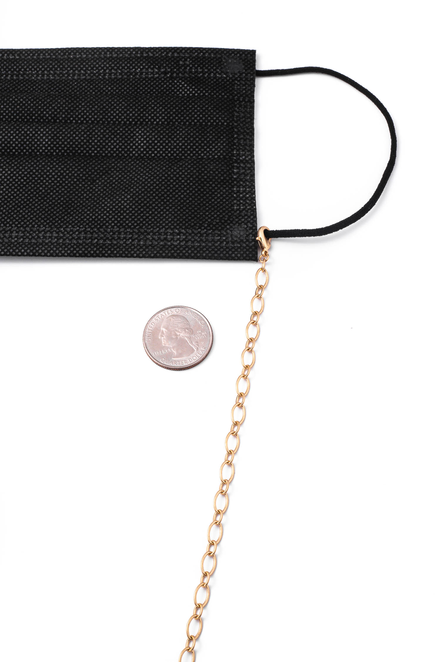 This face mask has a dainty mini link mask chain design. A stylish must have piece of protective wear! Available in G and S.