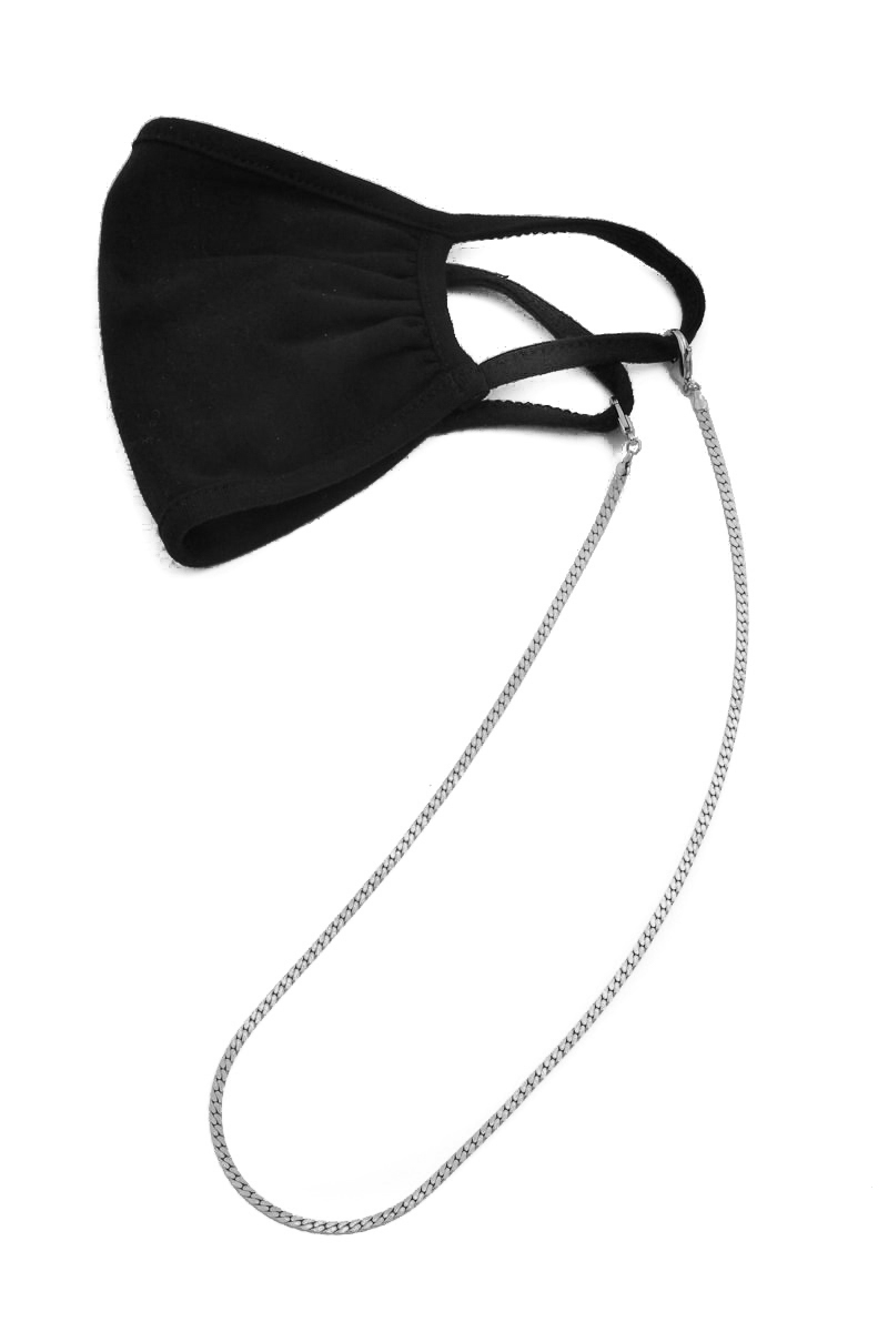 This face mask has a dainty curb link mask chain design. A stylish must have piece of protective wear! Available in G and S.