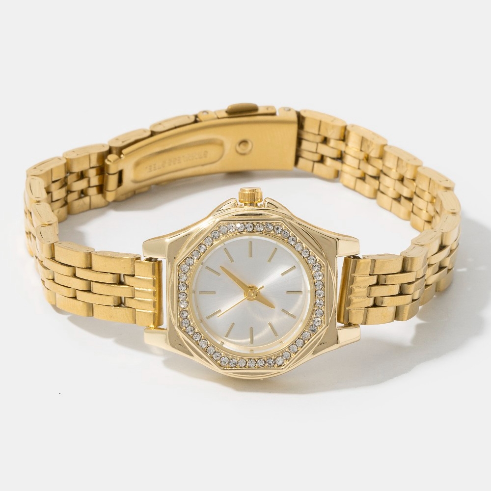 The epitome of sophistication and style, this accessory emanates an elegant pave trim octagonal watch design. Add some personality to your outfit with this stylish accessory. Available in GBK, SBK, SWH. This item is sold in packs of 1.