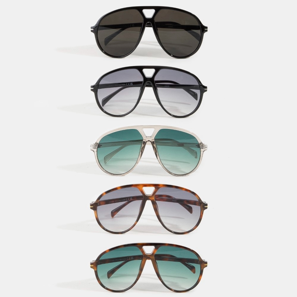 Effortlessly chic and sophisticated, this set of sunglasses highlights a special oversized aviator shield sunglasses set design. This item is a great way to add some texture and dimension to any outfit. Available in ASSORTED. This item is sold in packs of 12.