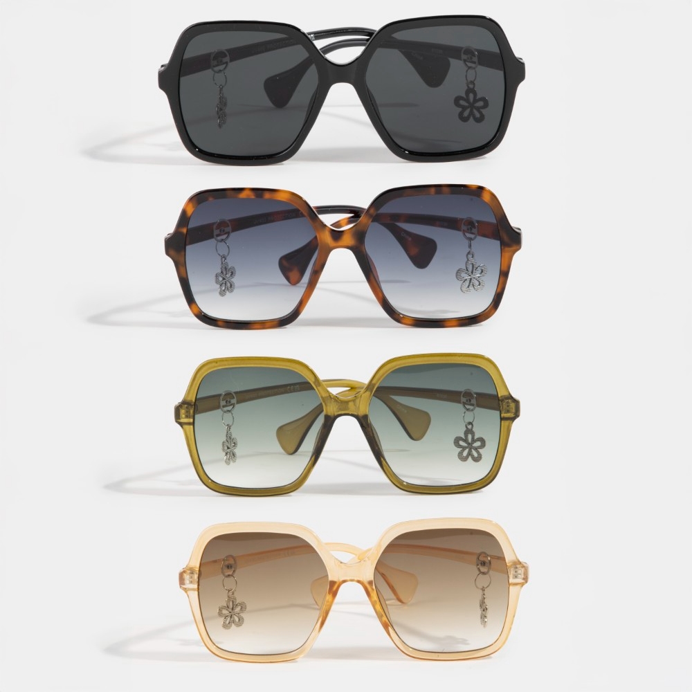 Unleash your inner fashionista, this set of sunglasses incorporates a flawless oversized acetate frame flower accent sunglasses design. Elevate your style effortlessly with this versatile set of sunglasses, enhancing the appeal of any ensemble. This item is sold in packs of 12.