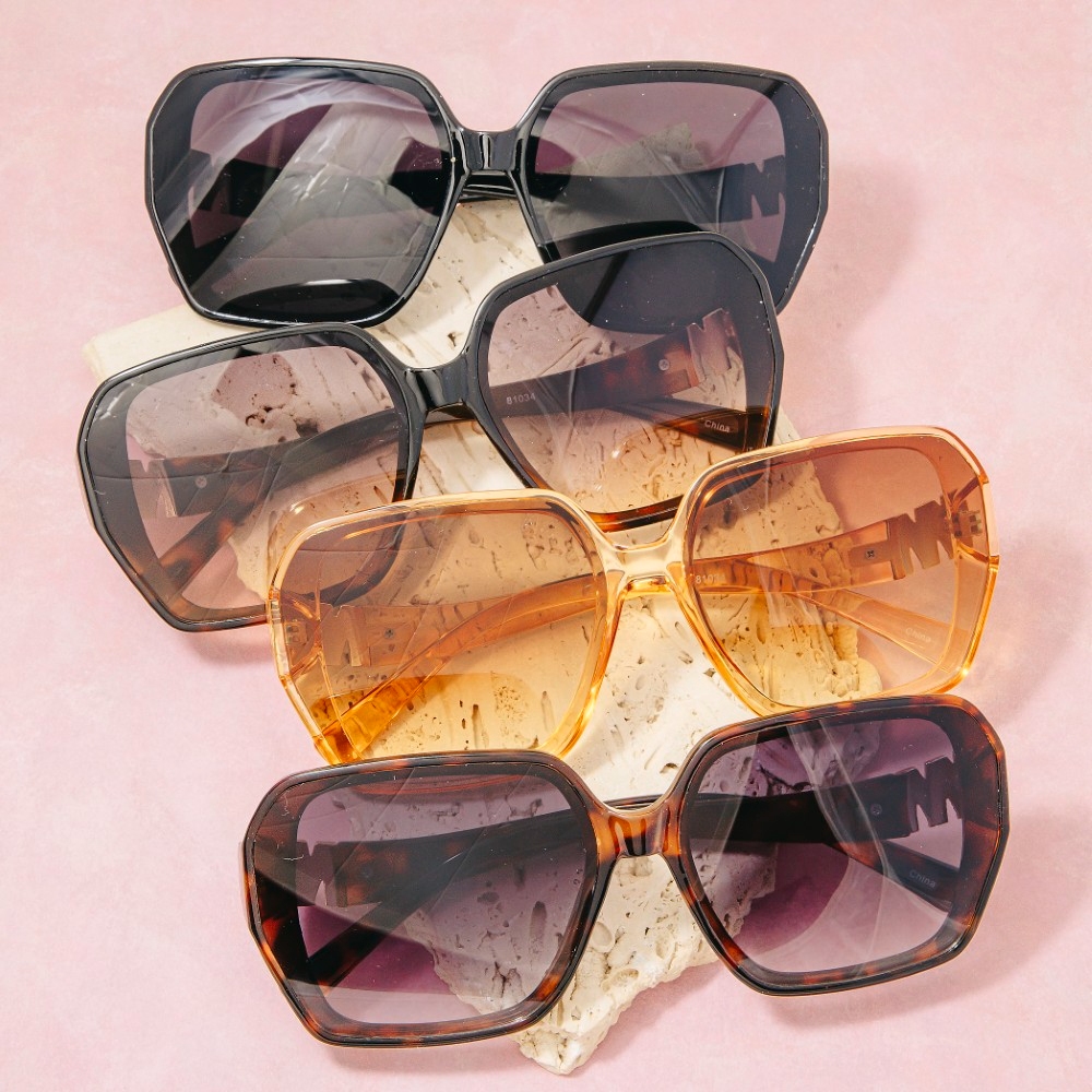Perfectly versatile and endlessly stylish, this set of sunglasses carries a charming oversized square acetate sunglasses set design. Elevate your personal style effortlessly with this versatile set of sunglasses, an essential component for a refined wardrobe. Available in ASSORTED. This item is sold in packs of 12.