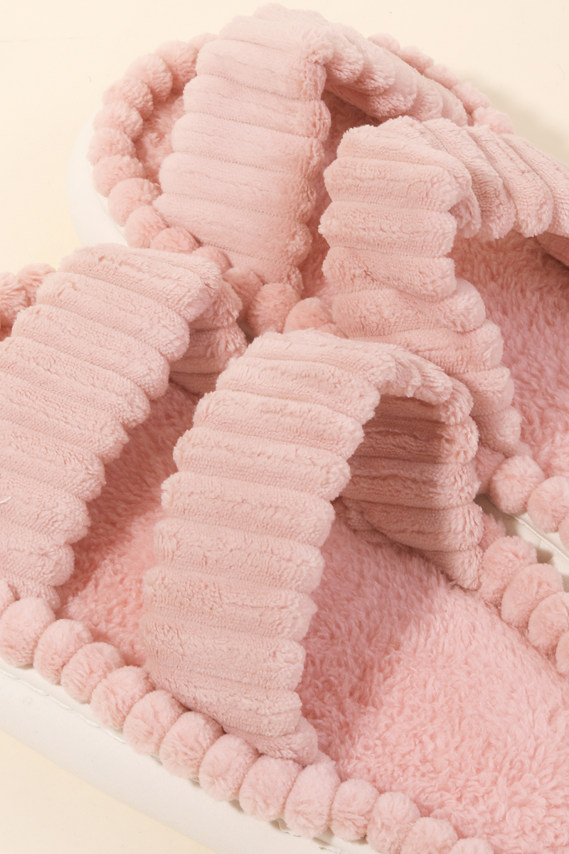 • An instant wardrobe staple, this pair of slippers introduces an exceptional ribbed plush double strap slippers design. Experience the transformative power of this versatile pair of slippers, effortlessly enhancing the overall aesthetic of your outfit. Available in PKM, PKS, PKL and WH. This item is sold in packs of 1.