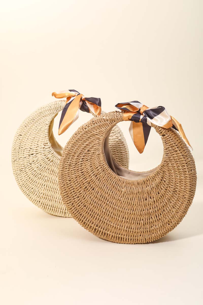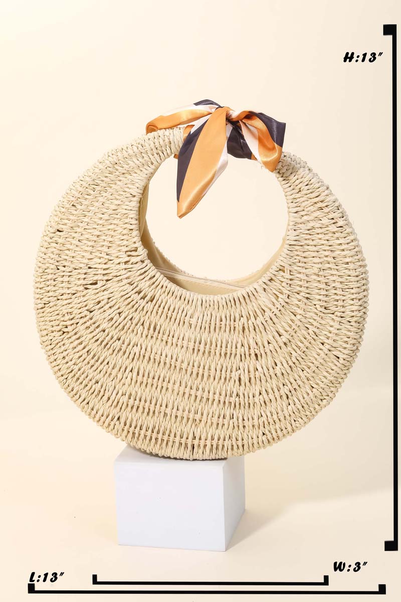 - Hot chic and trending in season must have bag has a round straw braided circle bag design. Perfect for business casual occasions! Available in CA and CR.