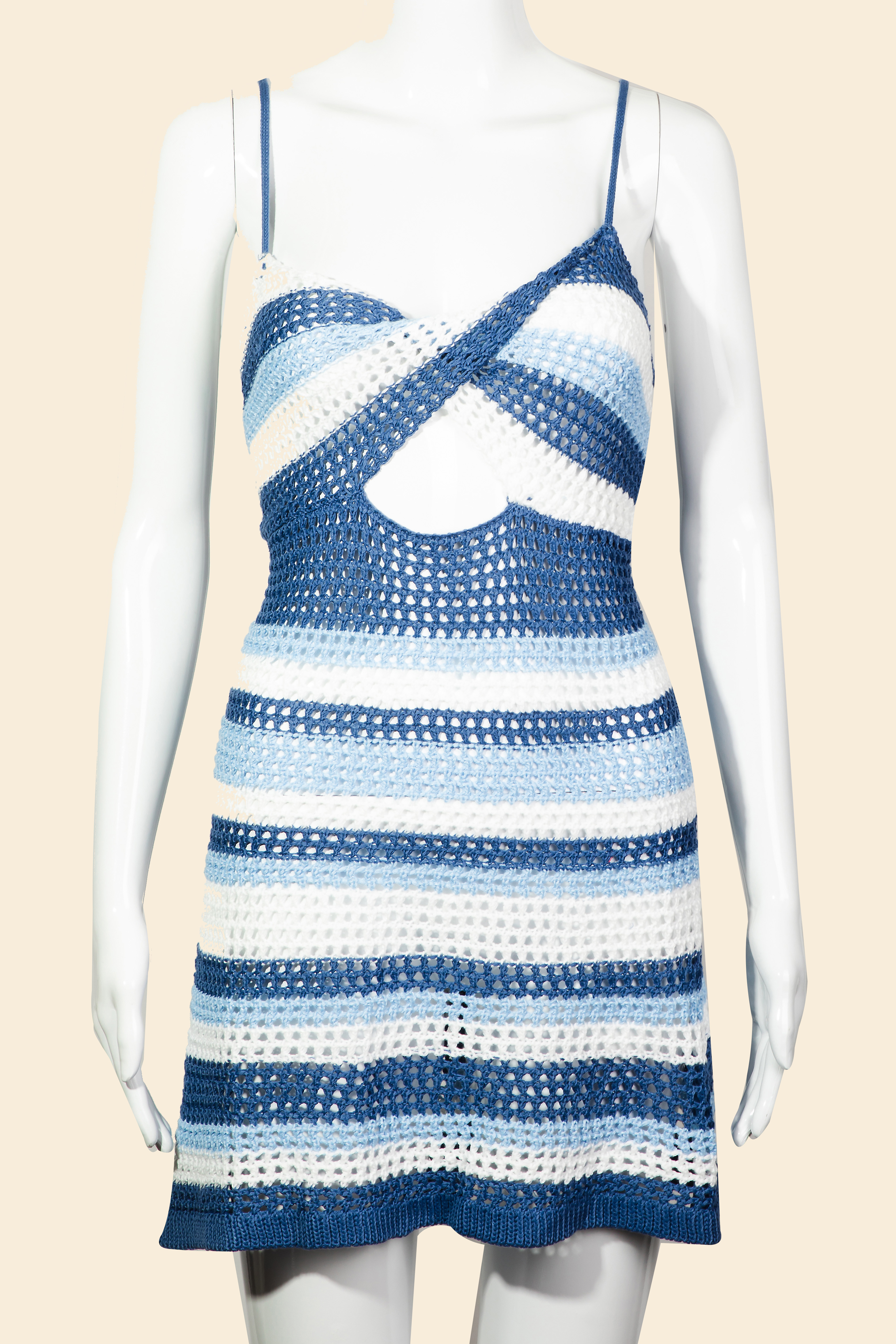 - The epitome of sophistication and style, this accessory encompasses a grand striped crochet knit cami cover up dress design. Achieve a perfect balance of style and sophistication with this versatile accessory, the ultimate choice for the fashion-savvy individual. Available in BL, BRL, BRM and BRS. This item is sold in packs of 1.