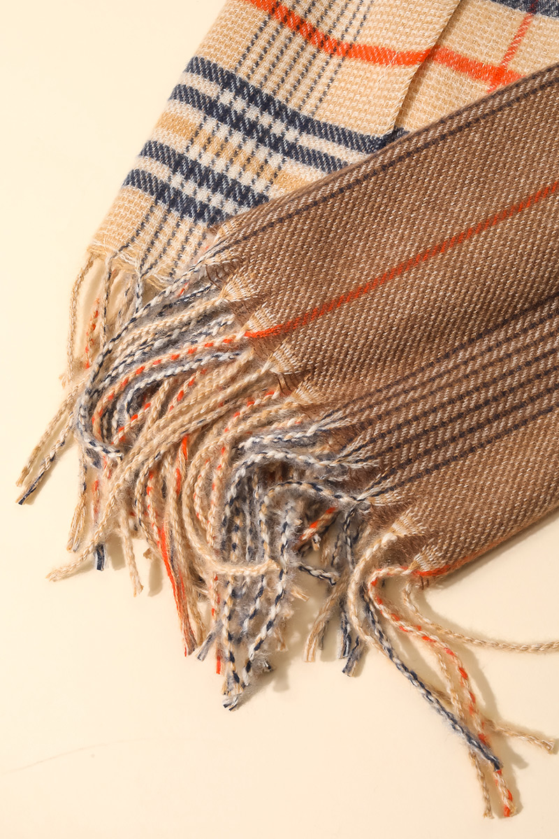 Beige Plaid Oblong Scarf