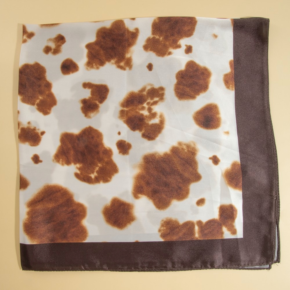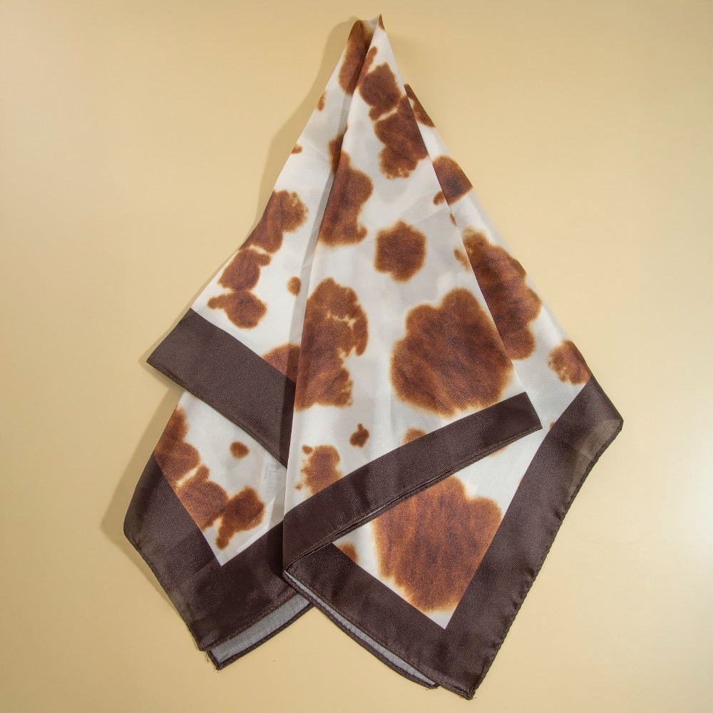 • Perfect for any fashion-forward individual, this scarf encompasses a grand brown cow print square bandana design. This item adds the perfect finishing touch to any outfit, making it stand out from the crowd. Available in BR. This item is sold in packs of 1.