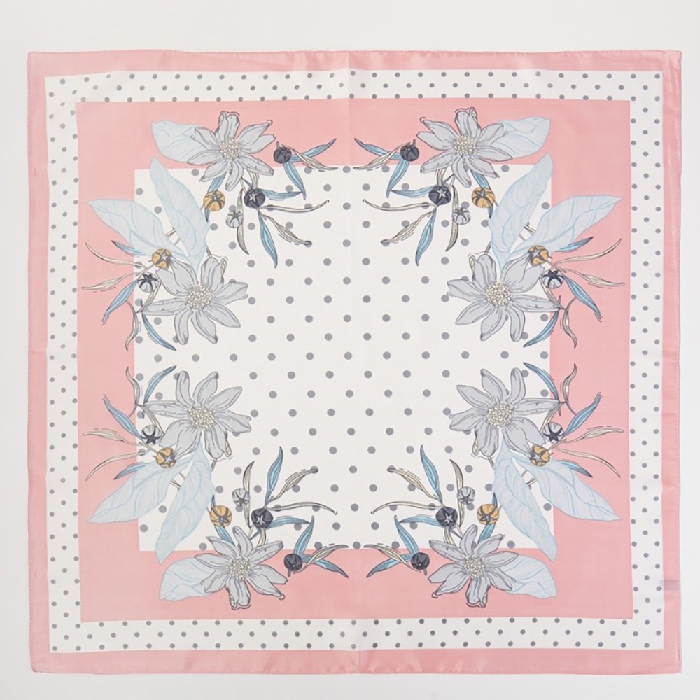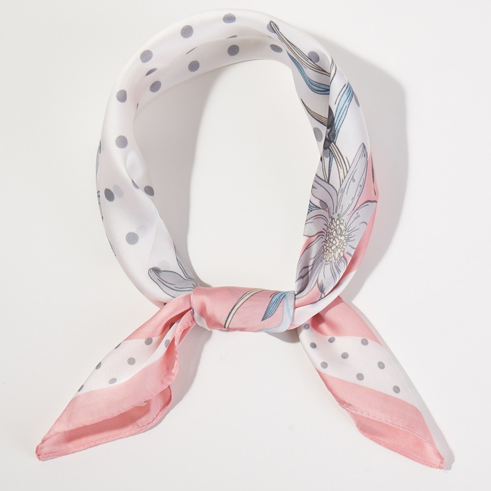 • Add a touch of elegance and glamour to your look, this scarf features an exceptional floral polka dot theme square design. A stylish scarf that's perfect for complementing your favorite outfit. Available in NV, PK, RD, TP. This item is sold in packs of 1.