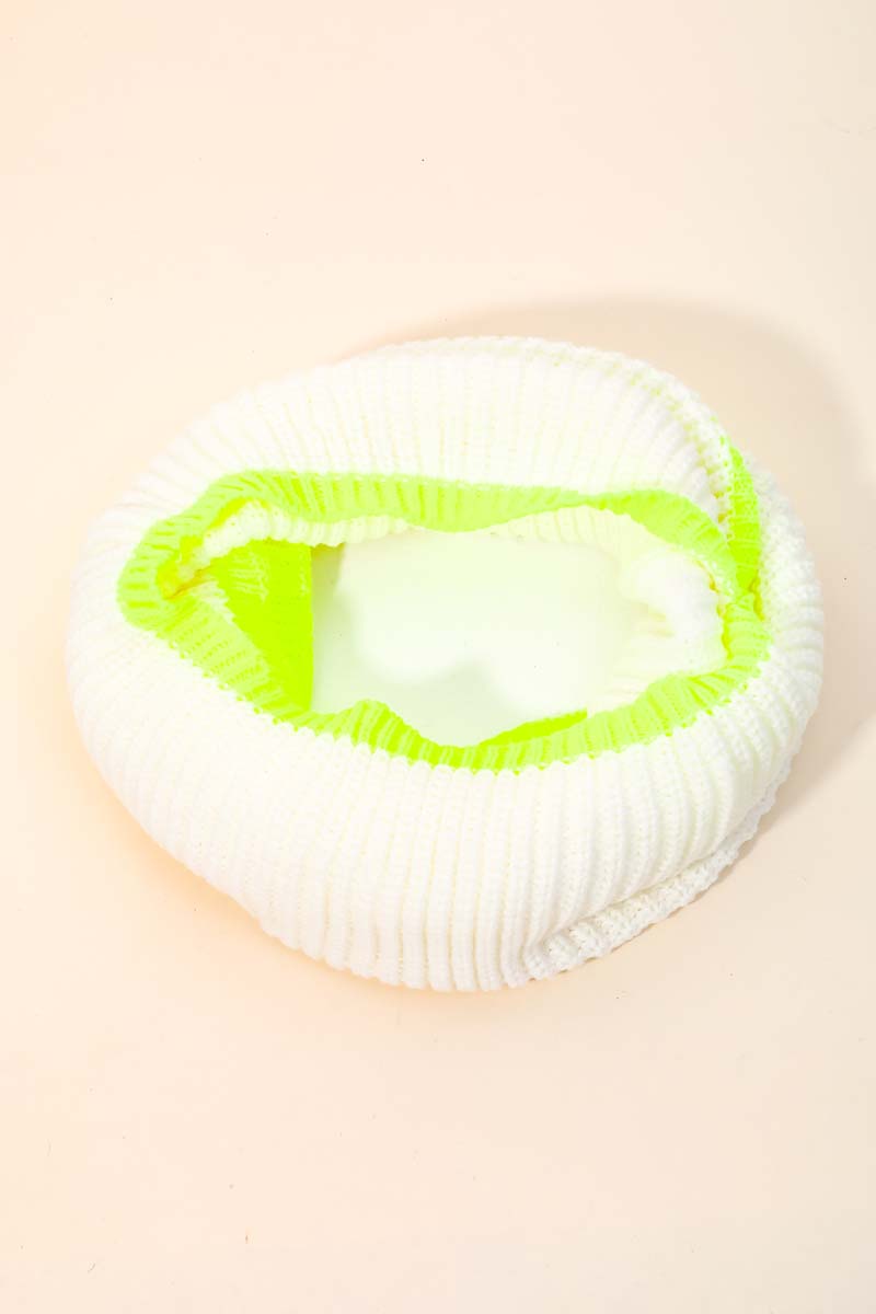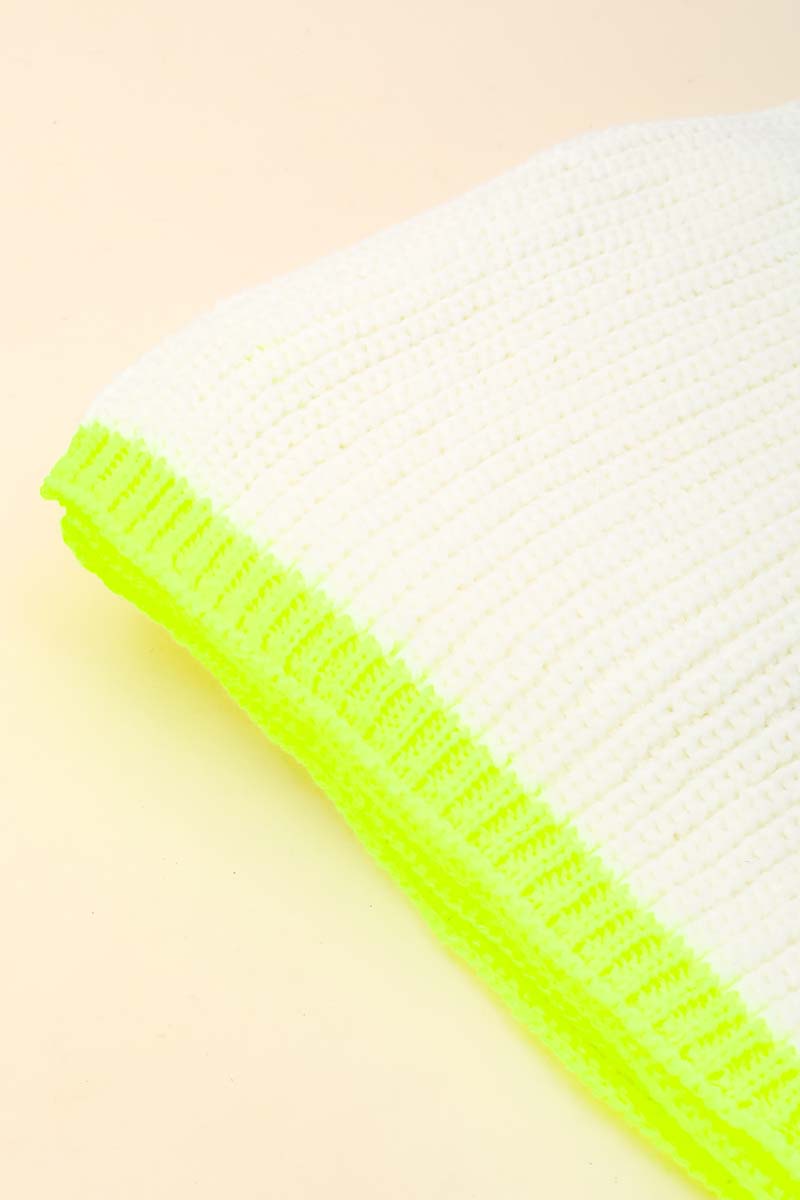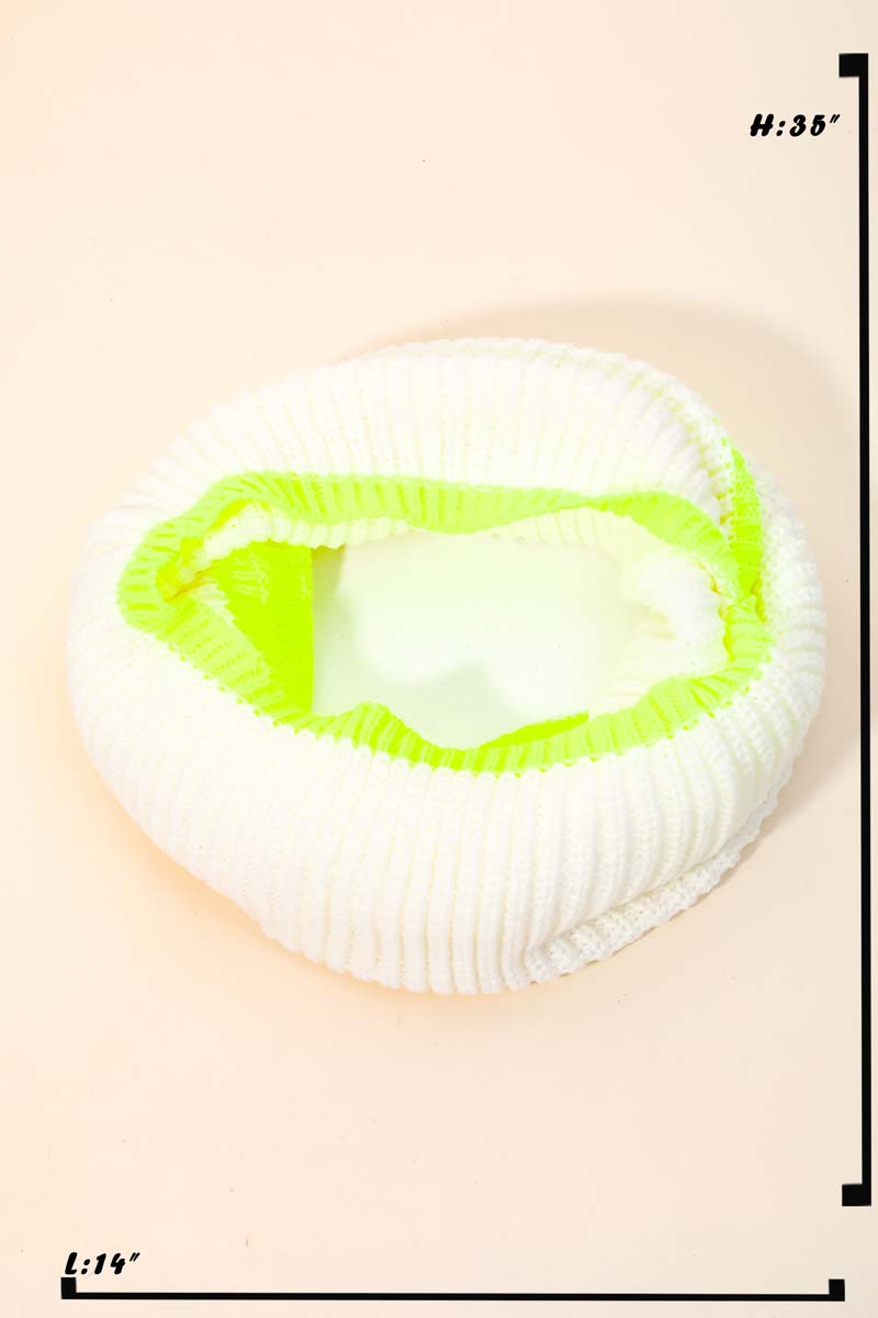 A must have scarf features a gorgeous detailed neon bordered infinity knit scarf design. Perfect for this summer season!