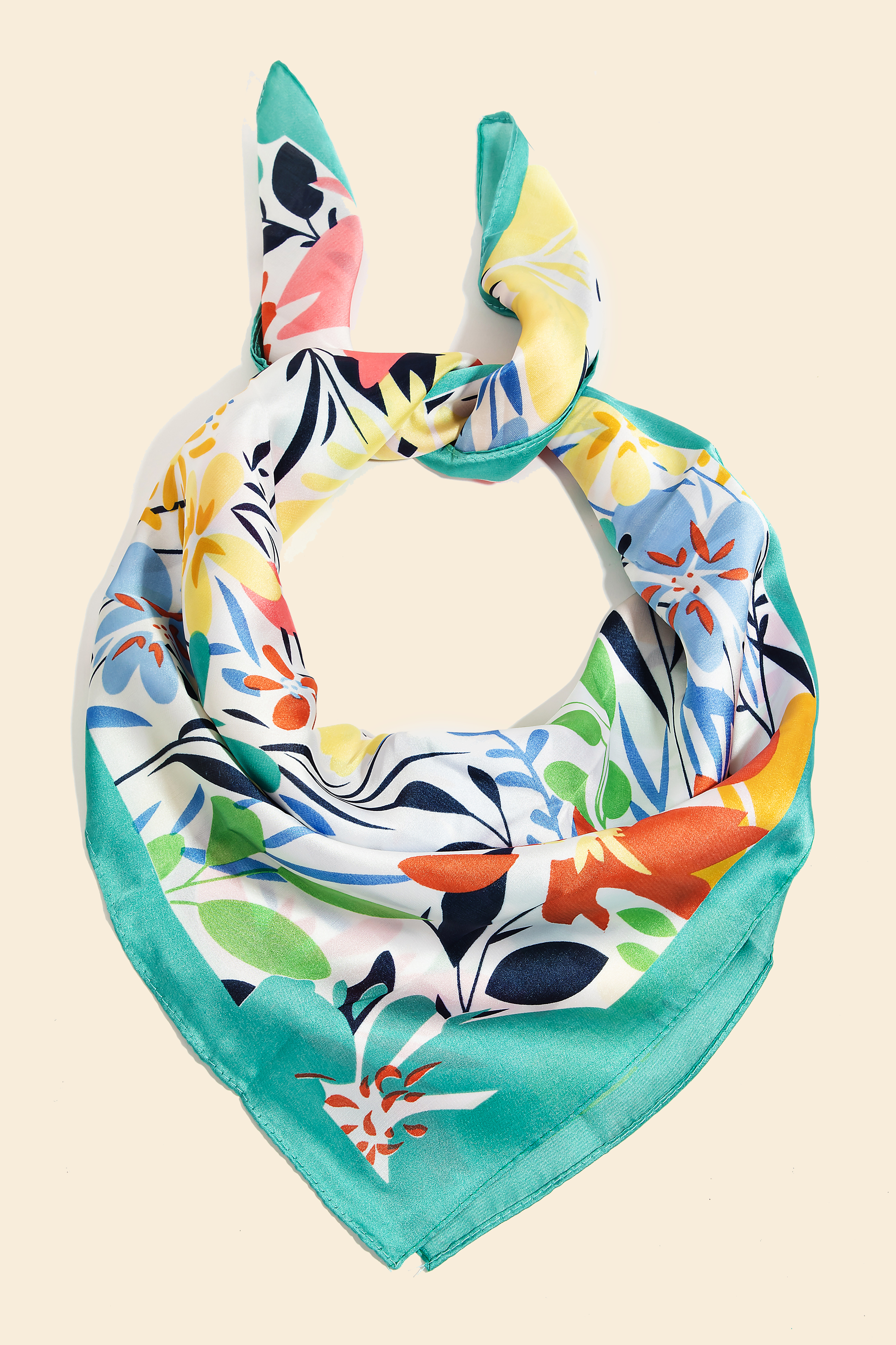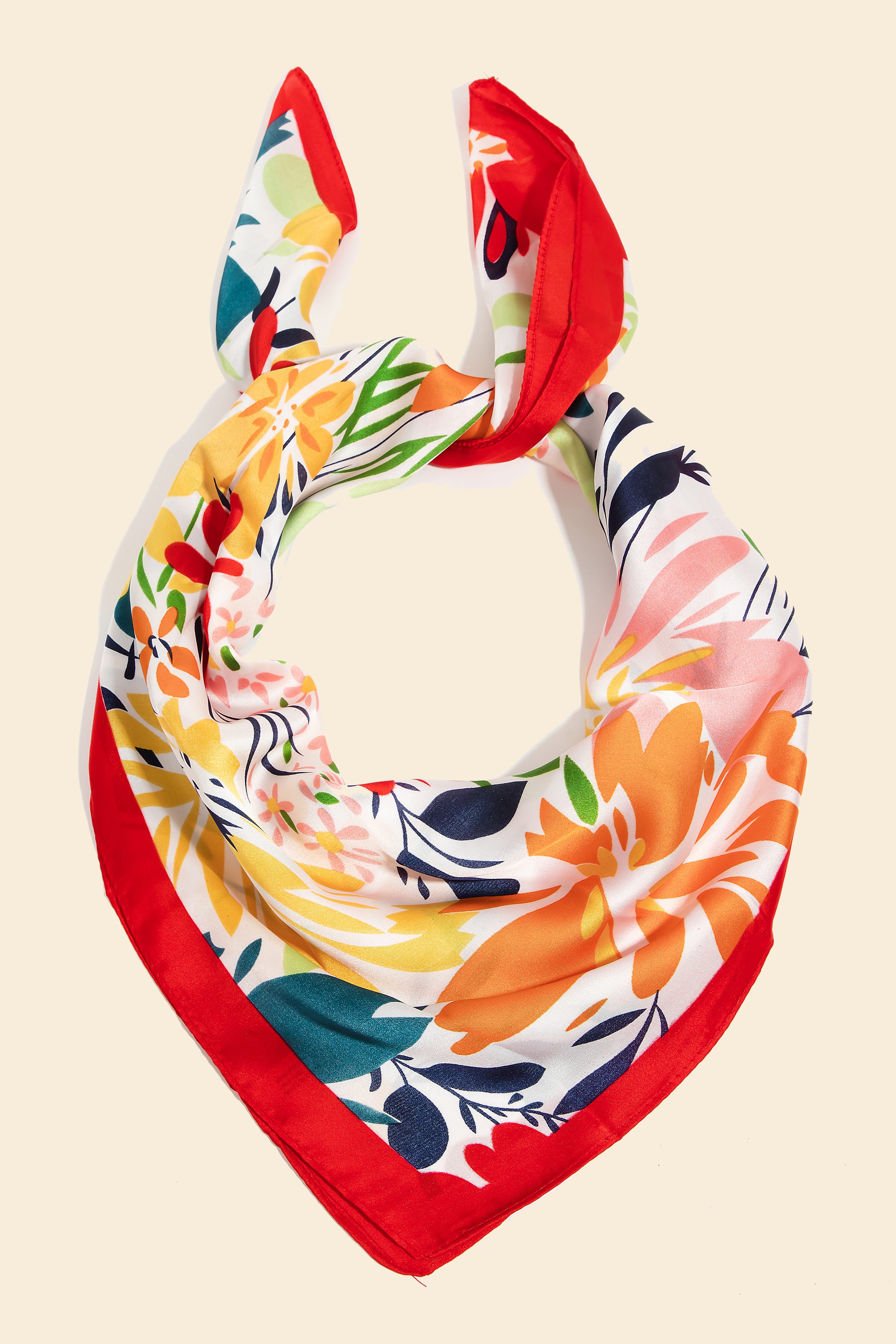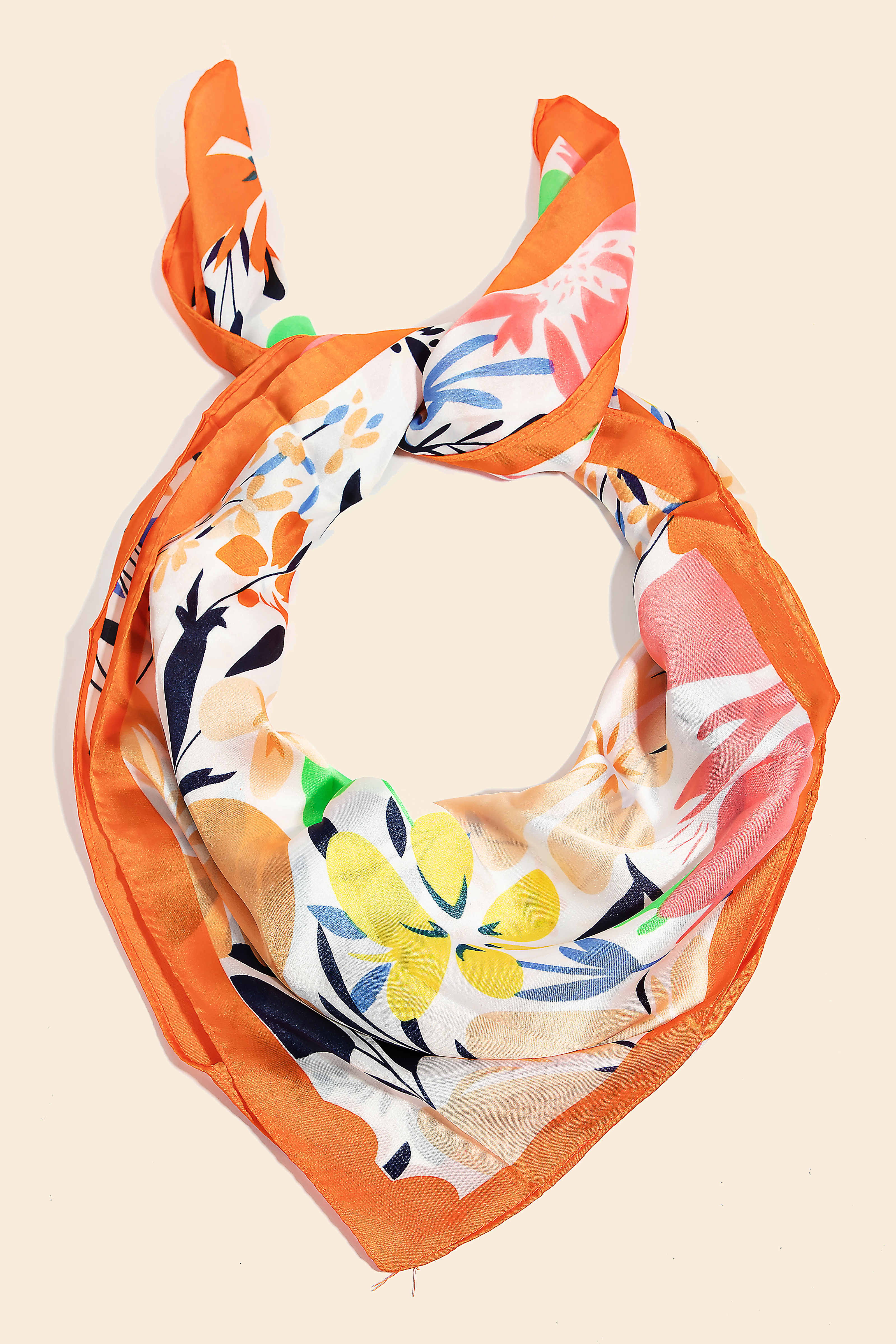 Add a touch of glamour to any outfit with this bandana adds a distinctive intricate floral print square bandana design. Elevate your outfit with this stylish accessory that's perfect for any occasion. Available in BK, OR, RD and TL. This item is sold in packs of 3.