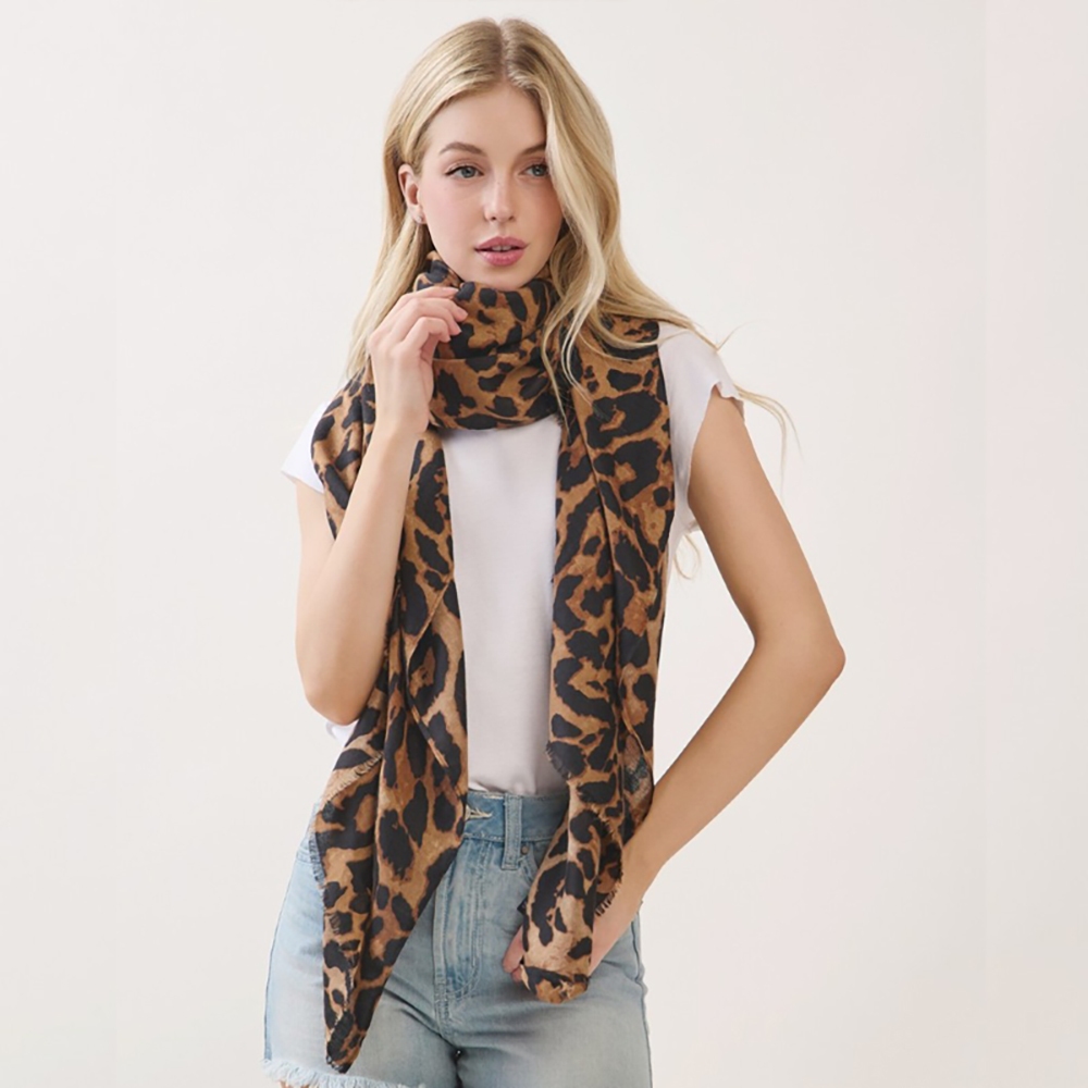 Perfect for any occasion, from casual to formal, this scarf introduces an exceptional leopard print design. This scarf is ideal for both casual and formal events, adding a touch of sophistication to any outfit. Available in BE, BR, PKGN. This item is sold in packs of 1.