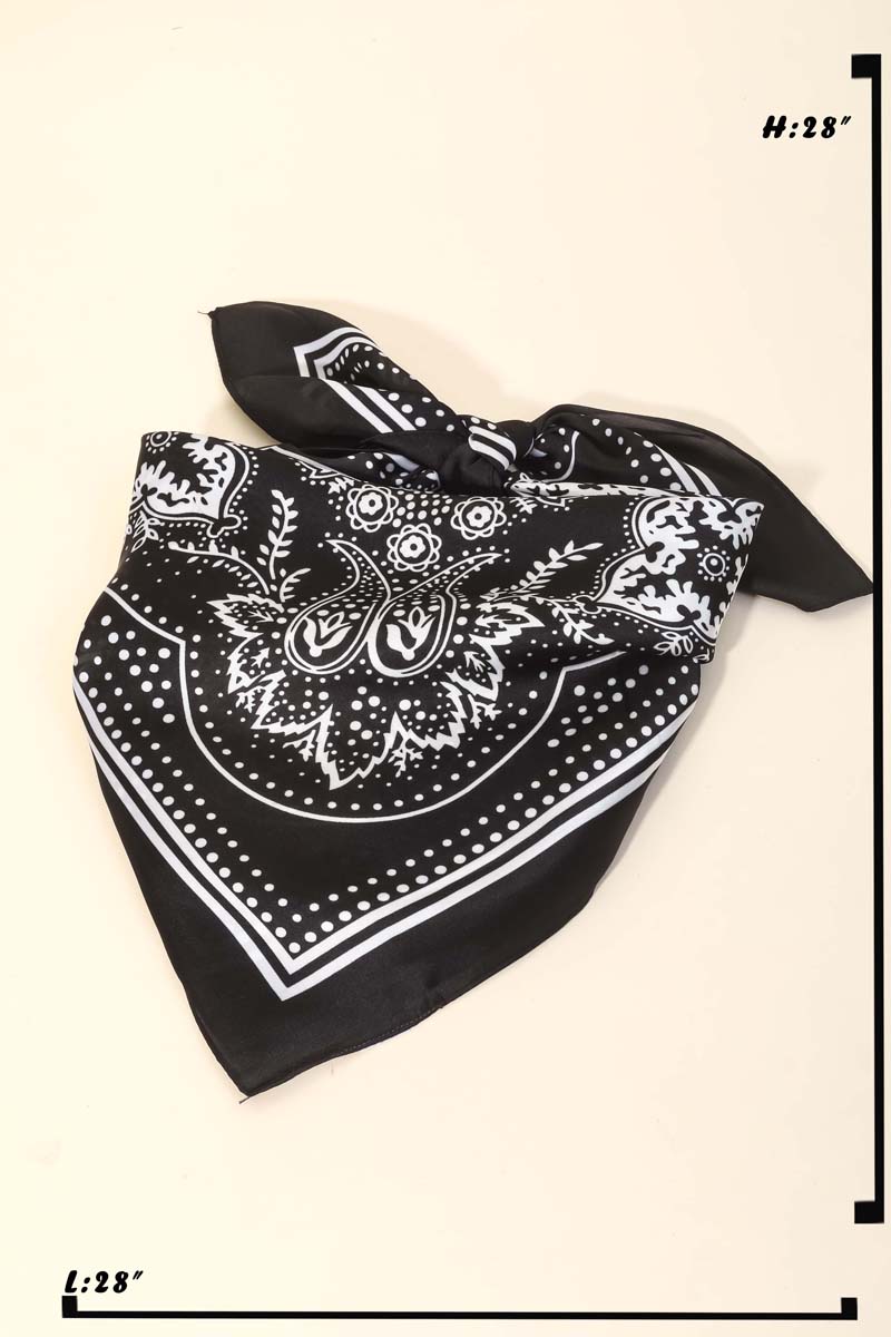 A contemporary masterpiece, this scarf evokes a captivating light paisley design square bandana design. Unleash the potential of your wardrobe with this versatile scarf, ensuring a touch of elegance in every ensemble. Available in BK, IV, MI, NV, OR, PK, FU, GN, MS, RD and TP. This item is sold in packs of 12.