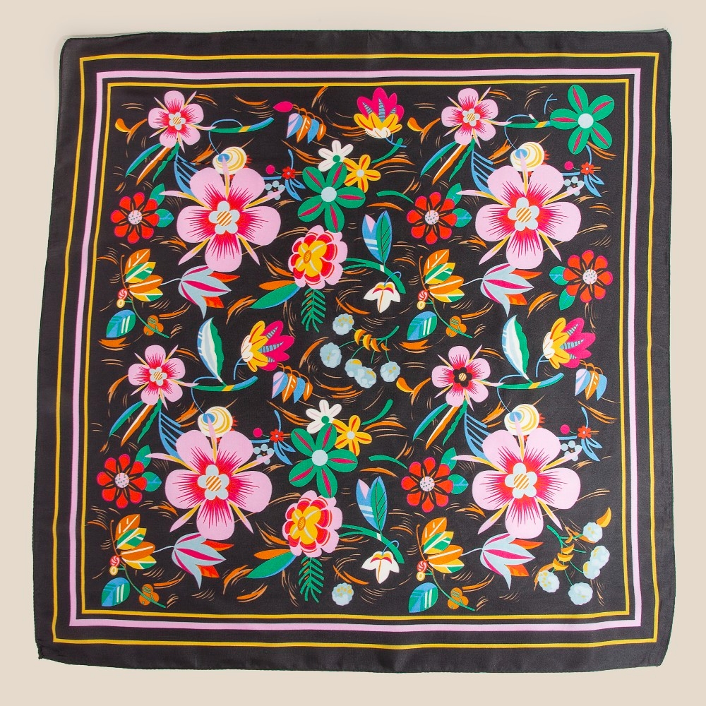 Colorful Flower Garden Print Square Bandana Scarf