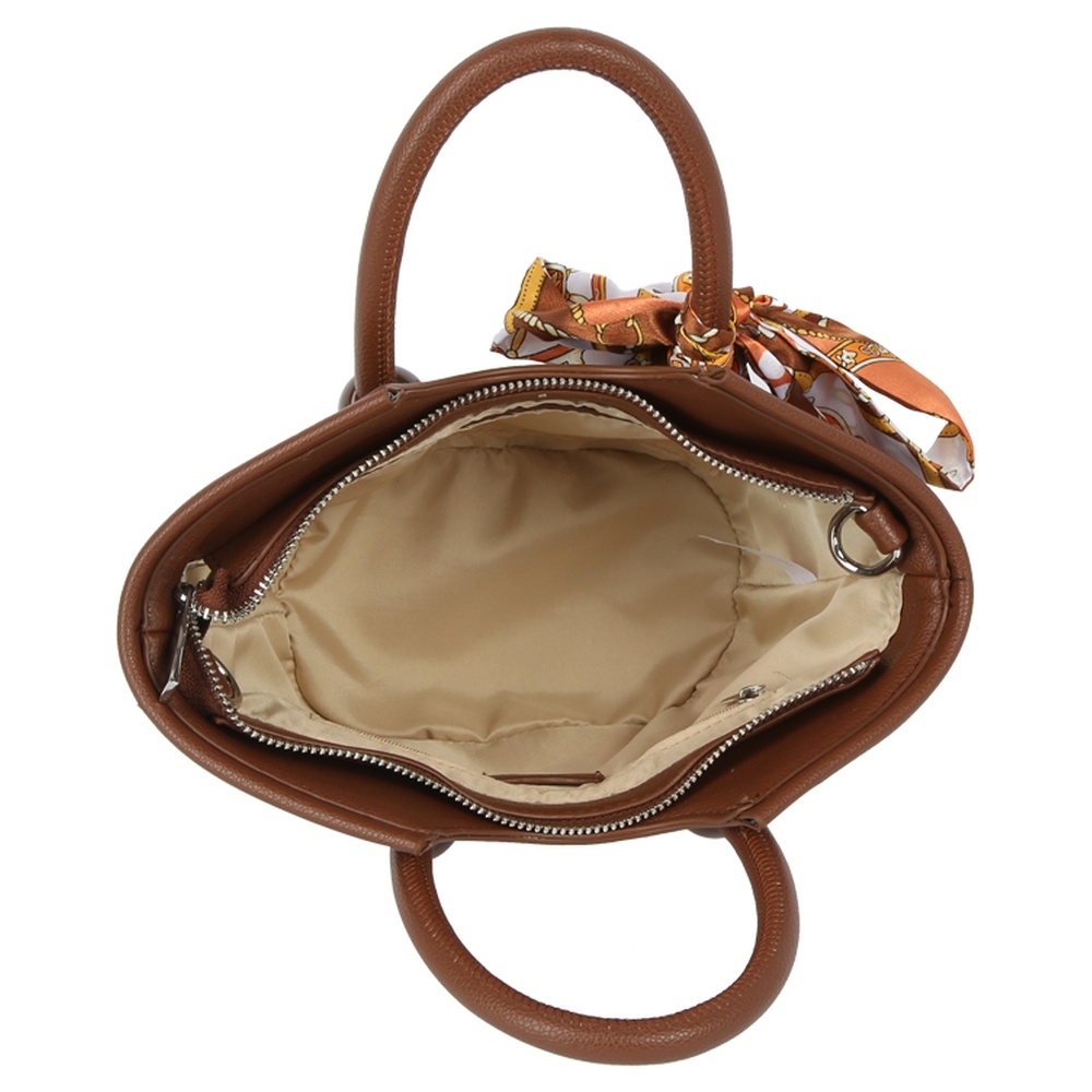 A modern classic, this scarf exudes a refined round top handle satchel design. This scarf is ideal for both casual and formal events, adding a touch of sophistication to any outfit. Available in DBR. This item is sold in packs of 1.