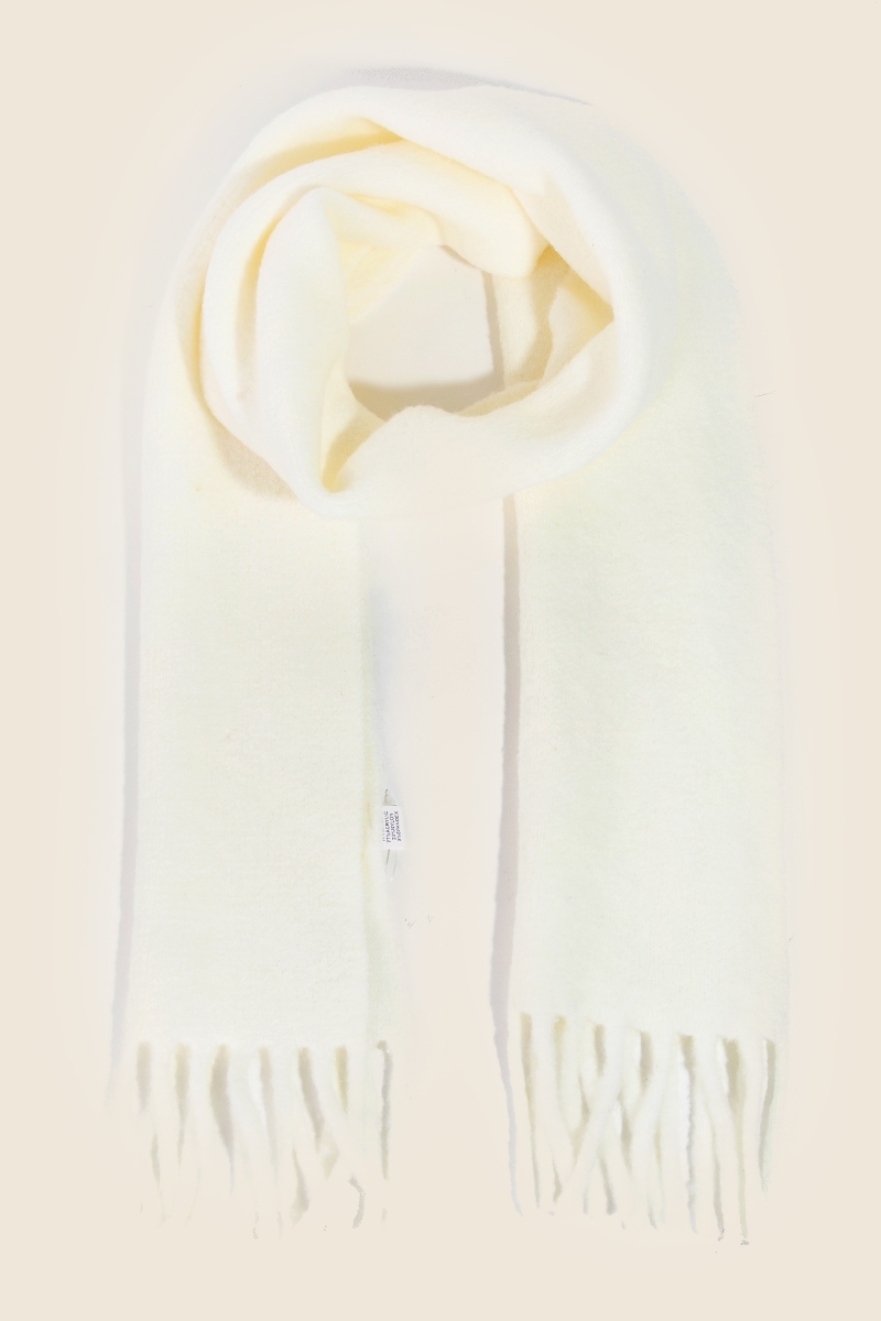 • A versatile piece that can be dressed up or down, this scarf embodies a sophisticated soft fringe fabric design. Elevate your fashion statement with this versatile scarf, adding a touch of glamour to your everyday look. Available in BK, IV, KA and PE. This item is sold in packs of 1.