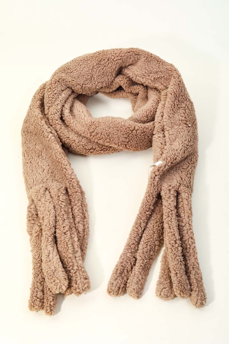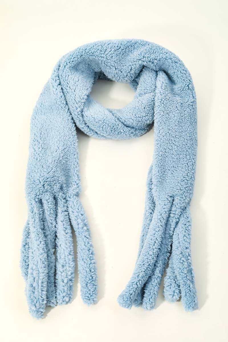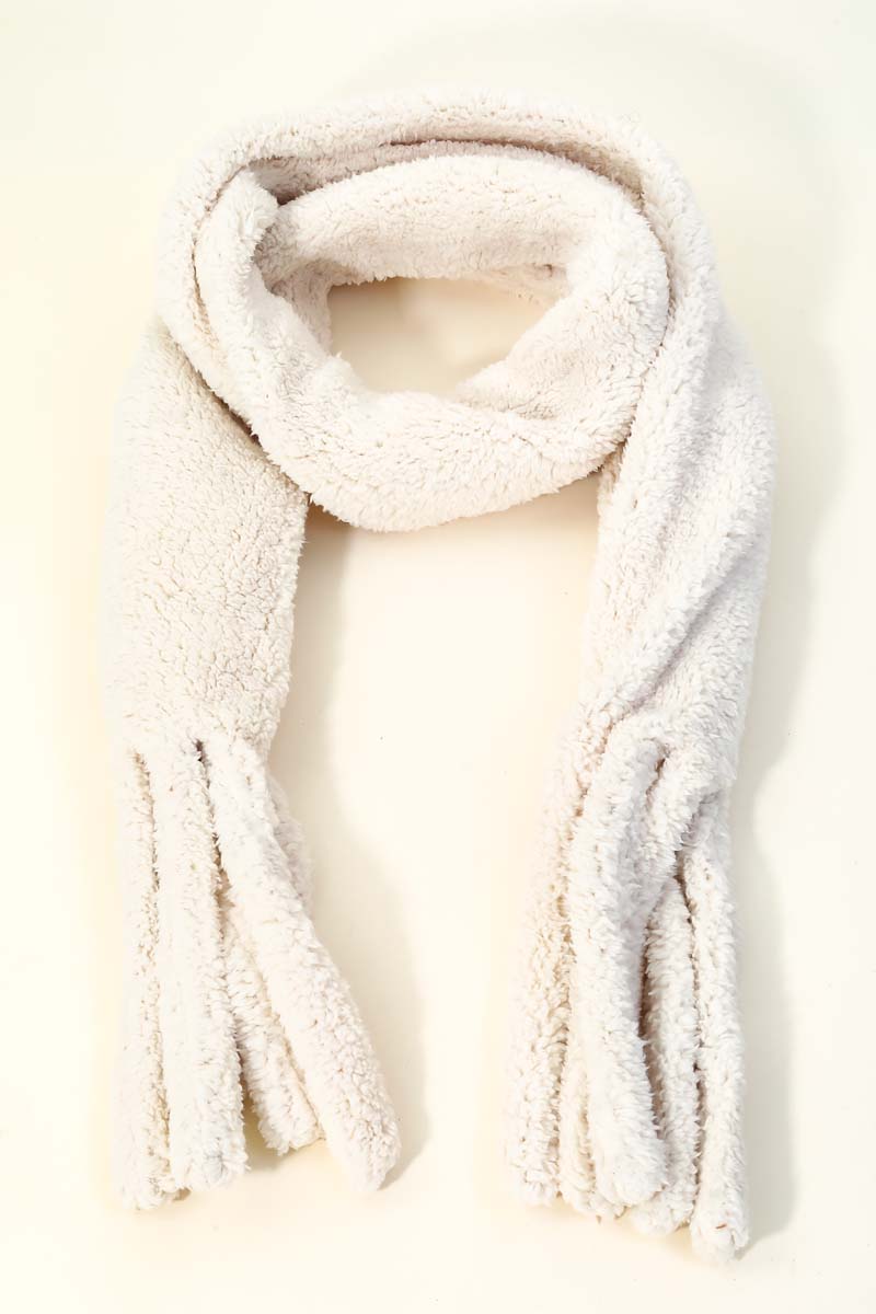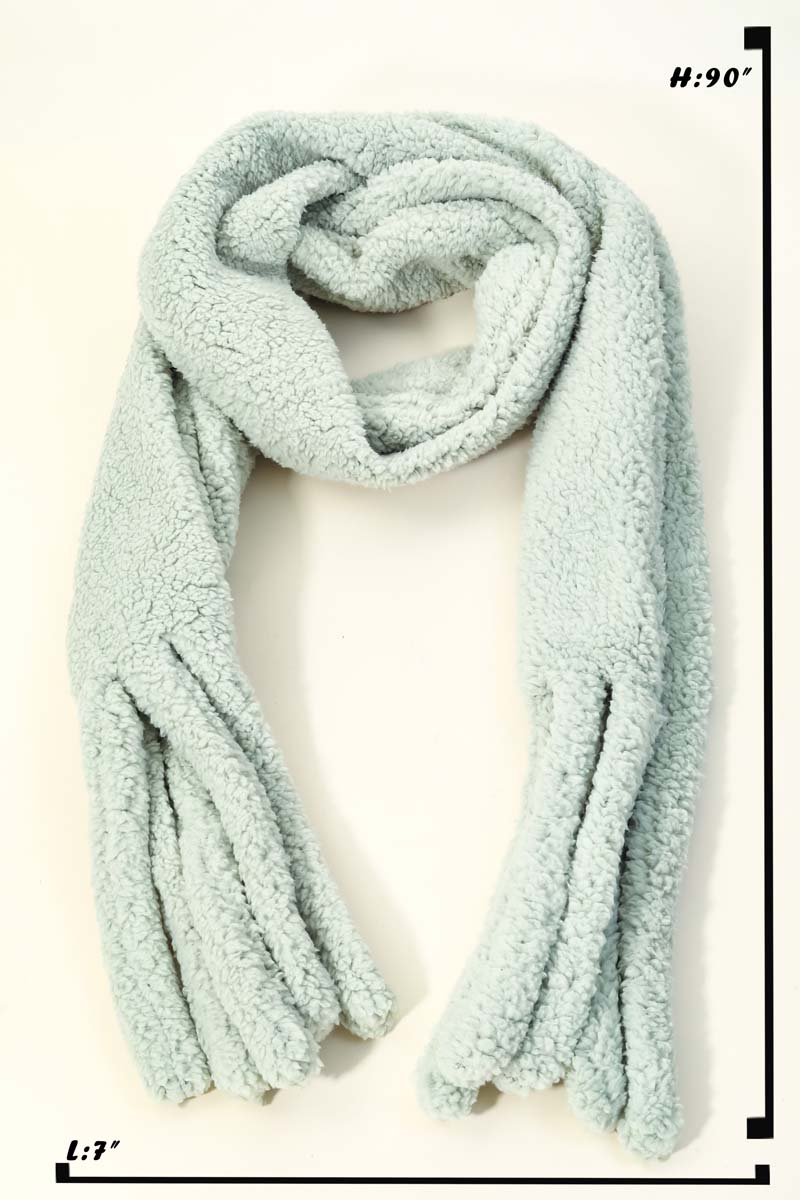 This popular giftable oblong scarf that is created with a faux teddy fur oblong scarf design. Perfect for casual occasions! Available in IVO, LTBL, MIN, PIN and TAU.