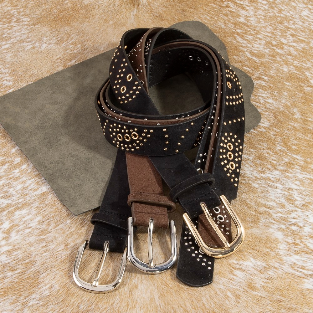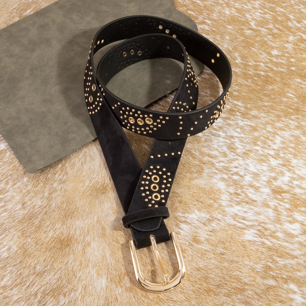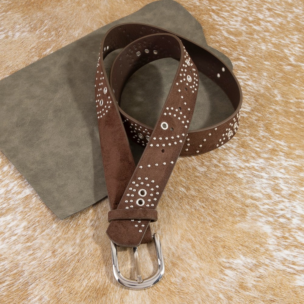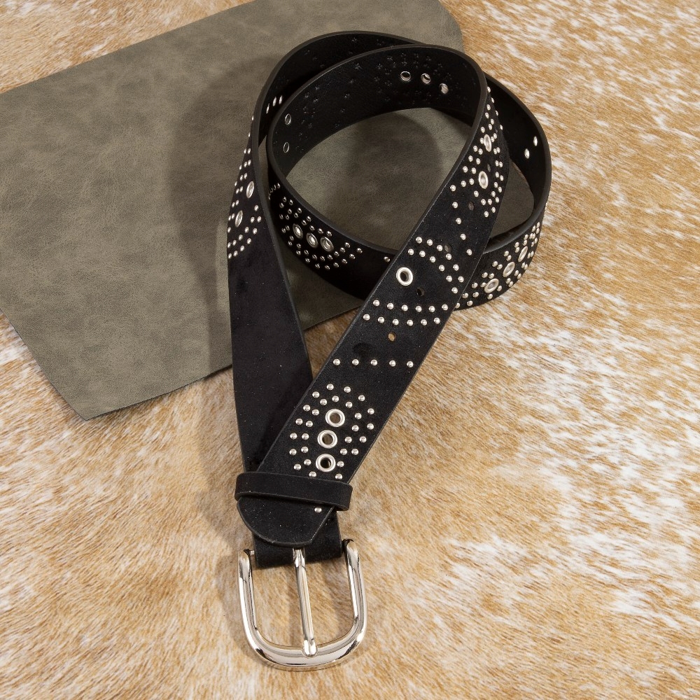 • This piece is both timeless and on-trend, this leather belt includes a stunning scattered studded vegan design. Elevate your fashion ensemble effortlessly with this versatile leather belt, a stylish choice for the modern trendsetter. This item is sold in packs of 12.