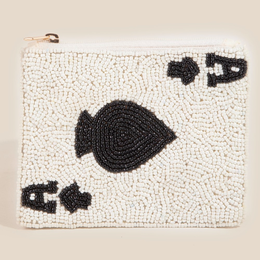 - A versatile and stylish addition to any wardrobe, this coin purse offers a remarkable seed beaded ace card design. This item is the perfect finishing touch to any outfit, adding a touch of glamour and sophistication. Available in MULTI. This item is sold in packs of 2.