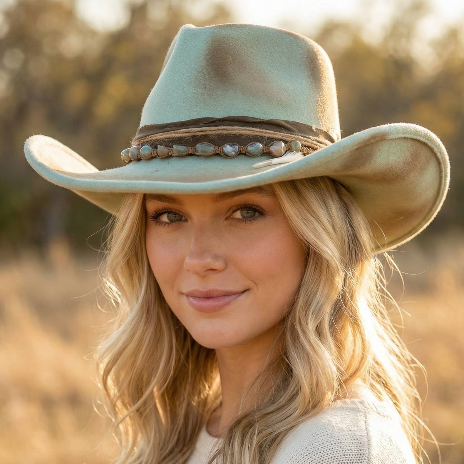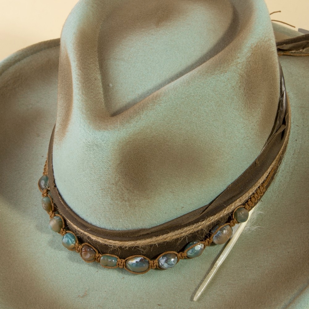 - This season's must-have cowboy hat, this cowboy hat showcases an alluring semi precious stone bead western design. Perfect for dressing up your favorite outfit, this cowboy hat is a must-have. Available in MT. This item is sold in packs of 1.