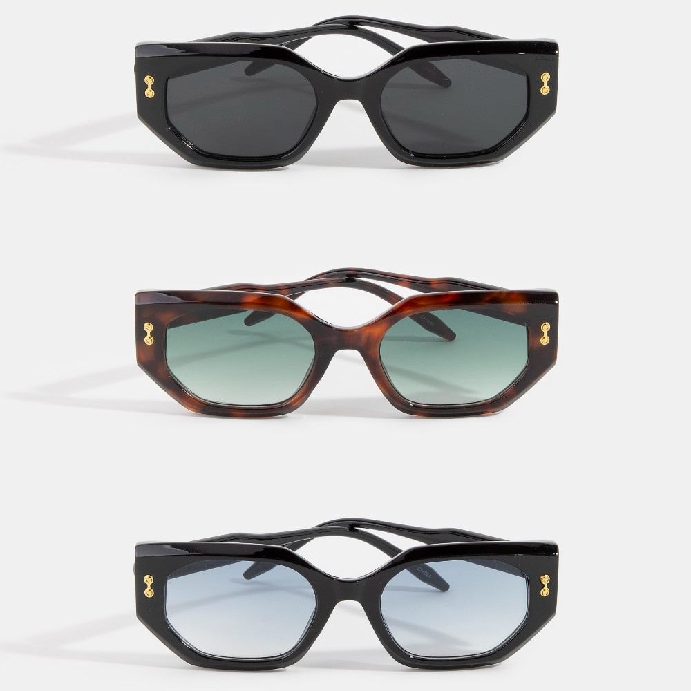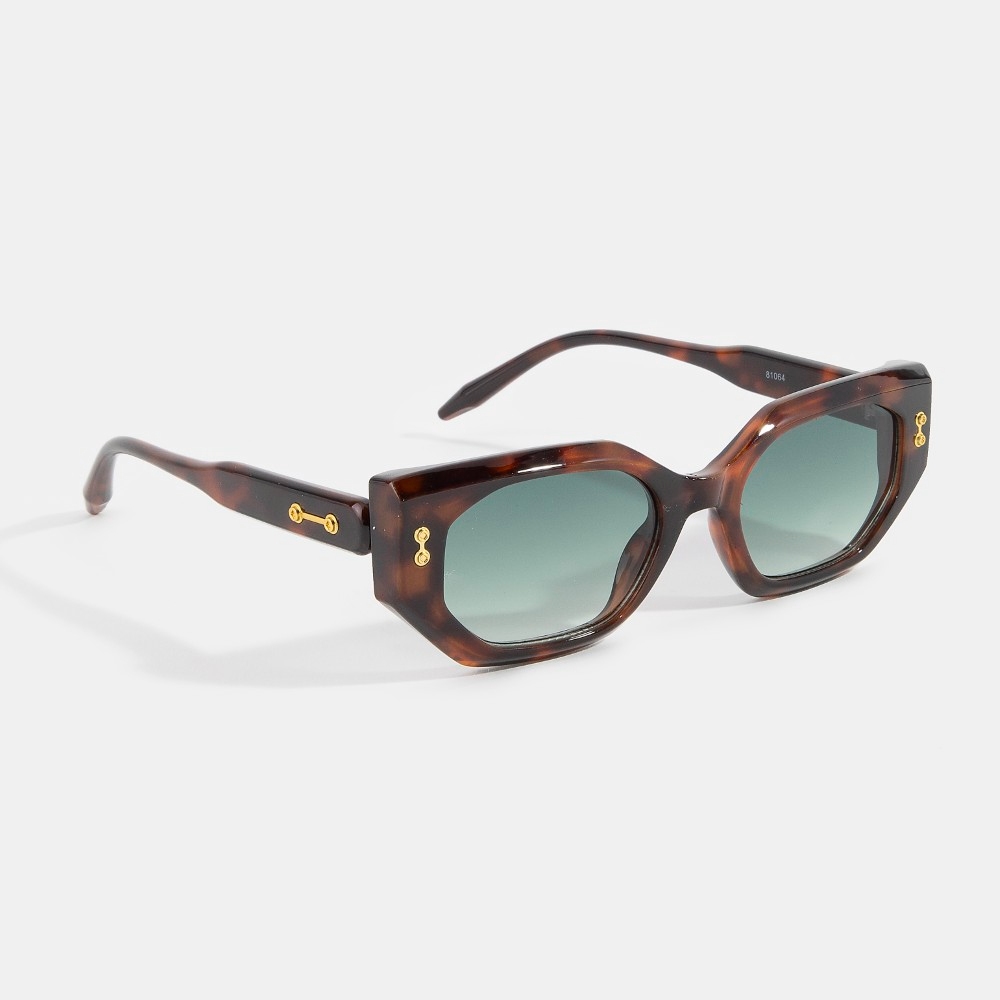 Wide Square Frame With Gold Temple Bar Sunglasses Set