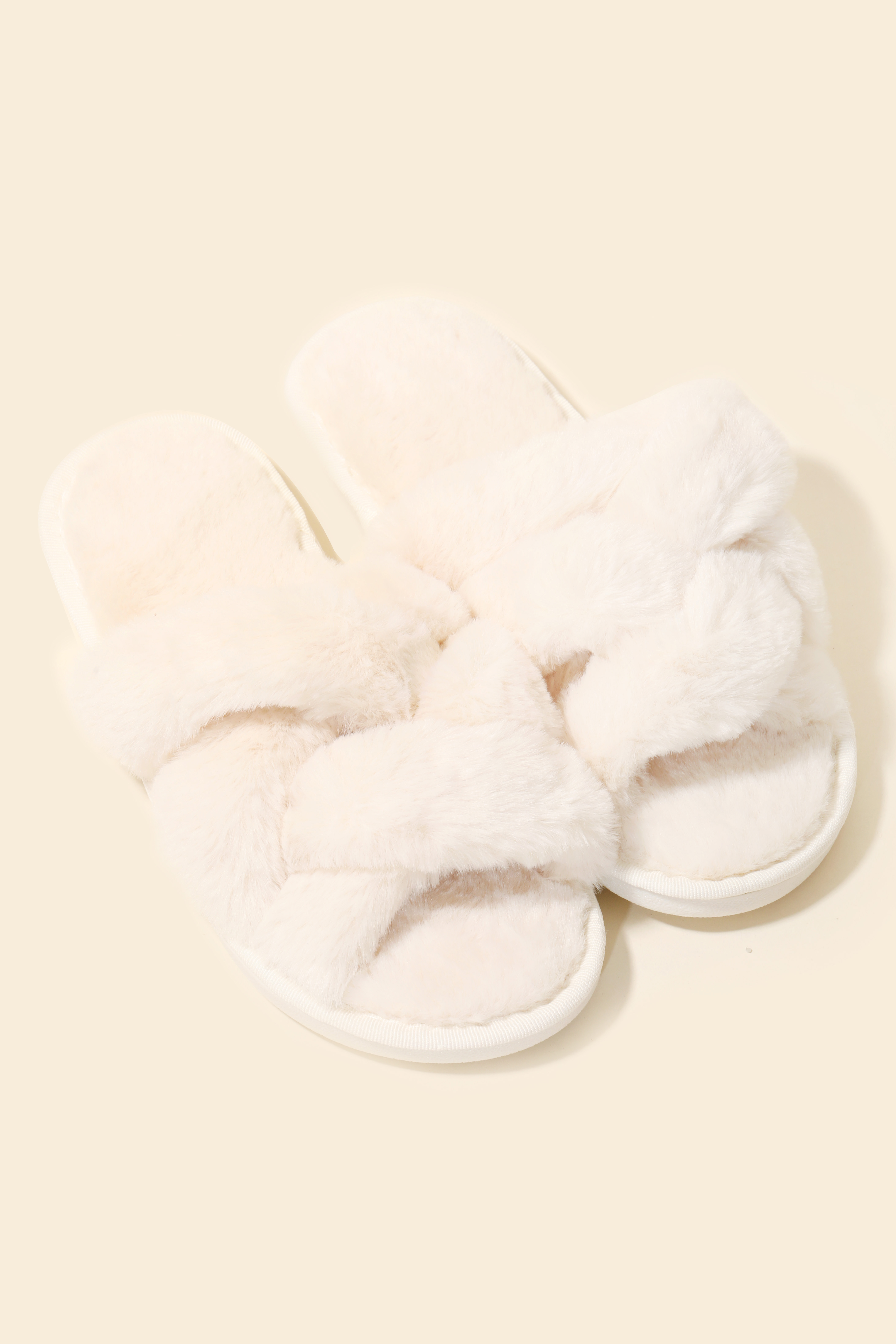 The perfect way to showcase your unique style, this pair of slippers contains a special open toe cross band fur slippers design. This accessory is a great way to add some glamour and sophistication to your outfit. Available in IVL, IVM, IVS, MUL, MUM and MUS. This item is sold in packs of 1.