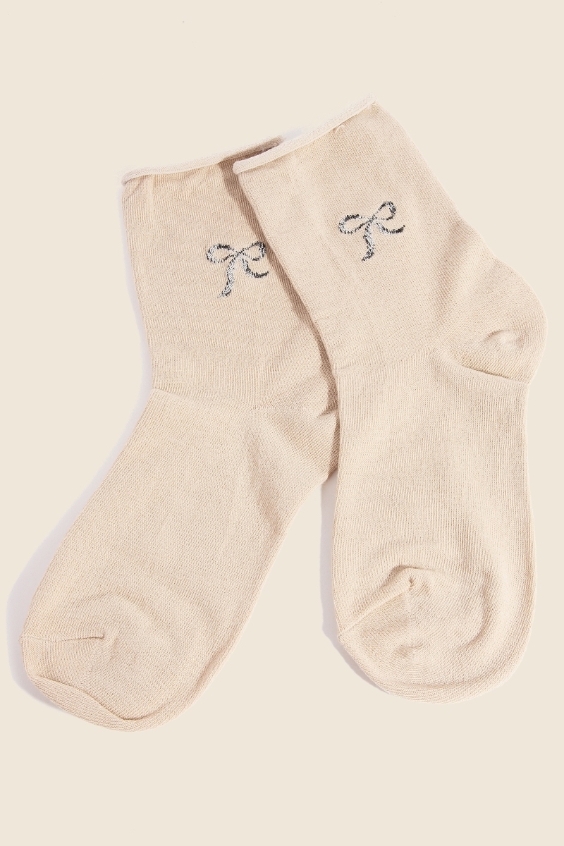 • Perfect for any fashion-forward individual, this pair of socks exudes a refined sparkling ribbon engraved beige design. A must-have pair of socks that adds a unique flair to any look. This item is sold in packs of 1.