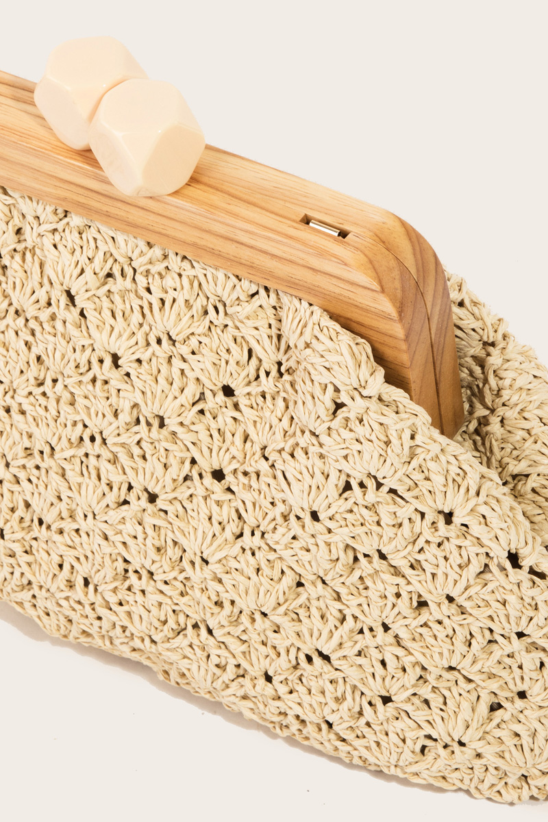 • A timeless piece that you'll wear for years to come, this clutch bag presents a striking straw braided wooden frame design. Elevate your fashion statement with this versatile clutch bag, adding a touch of glamour to your everyday look. Available in IV, KA. This item is sold in packs of 1.