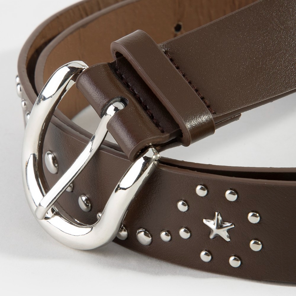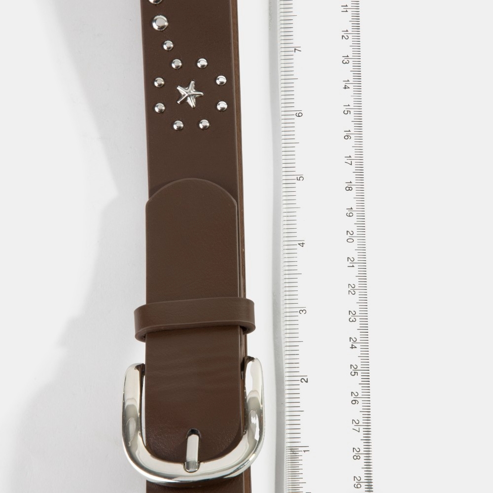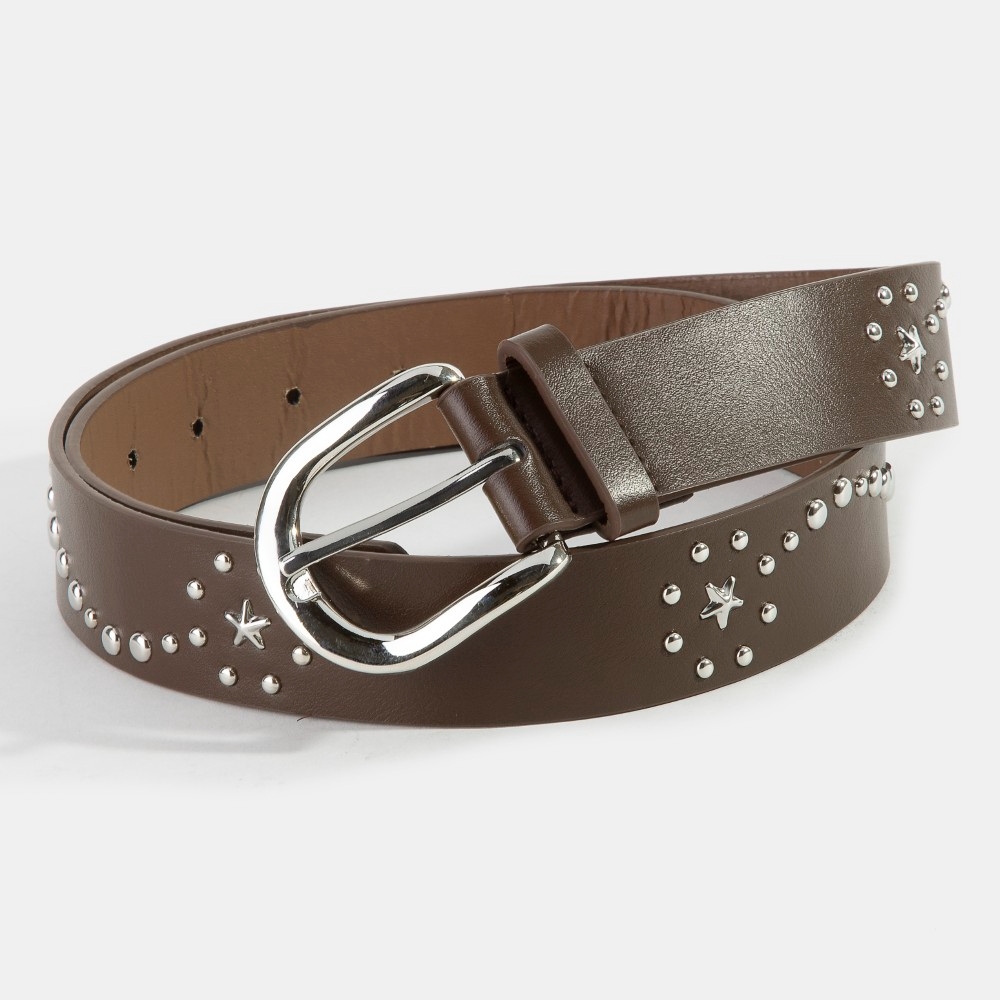 • A versatile piece that can be dressed up or down, this leather belt evokes a captivating studded star vegan design. Redefine your fashion identity with this versatile leather belt, a timeless piece that complements any wardrobe. This item is sold in packs of 1.