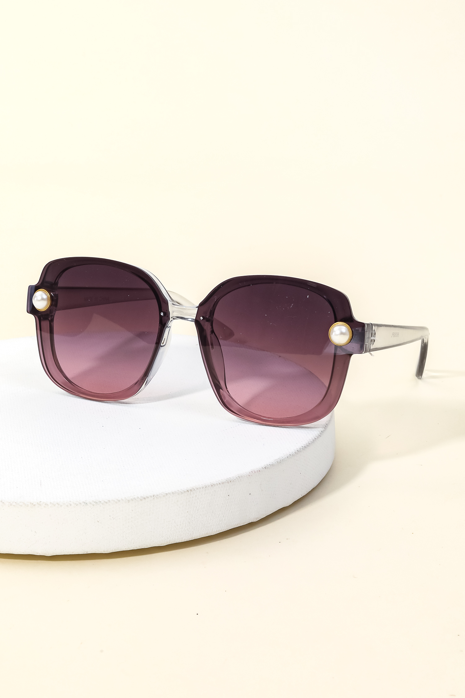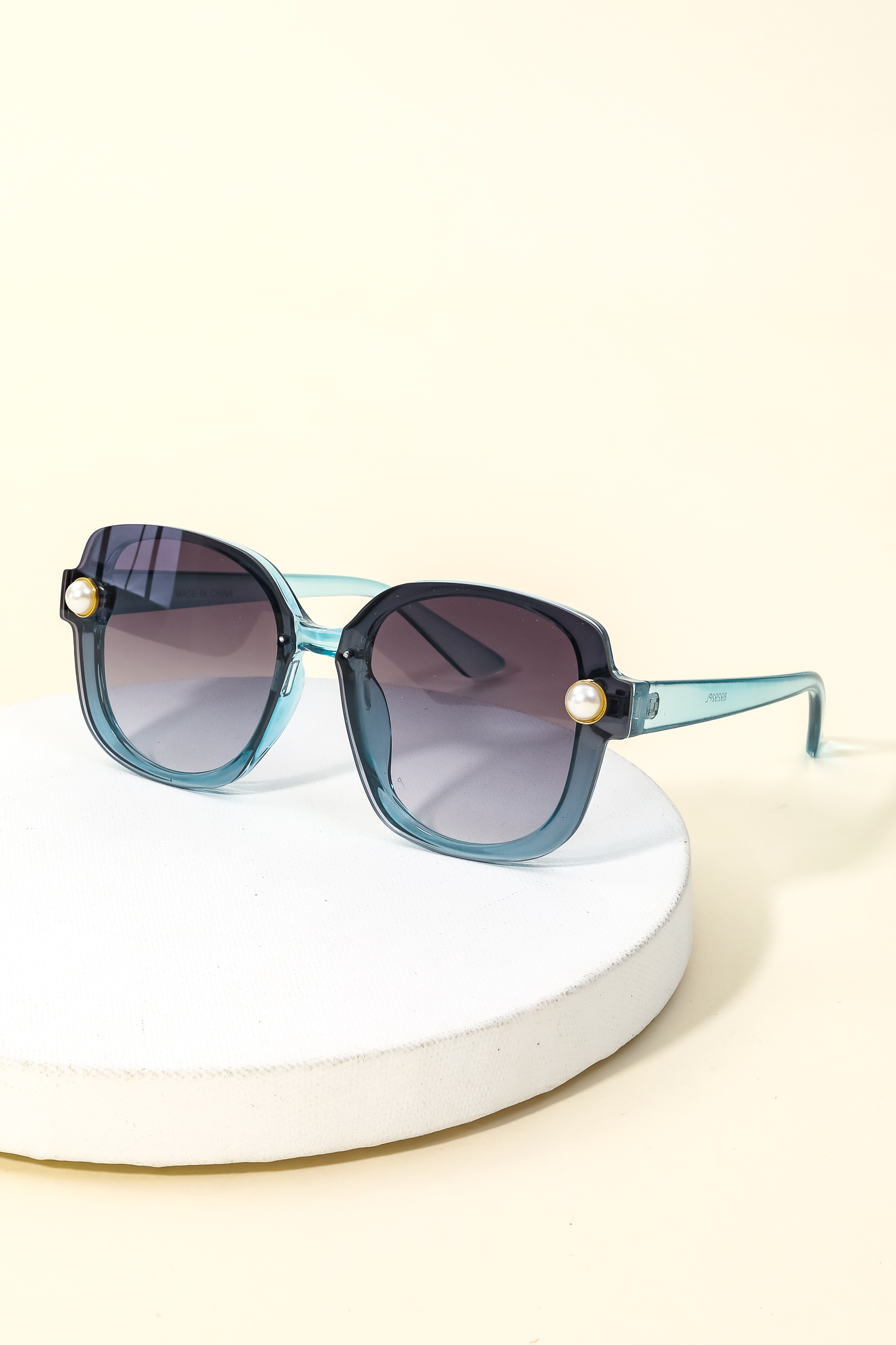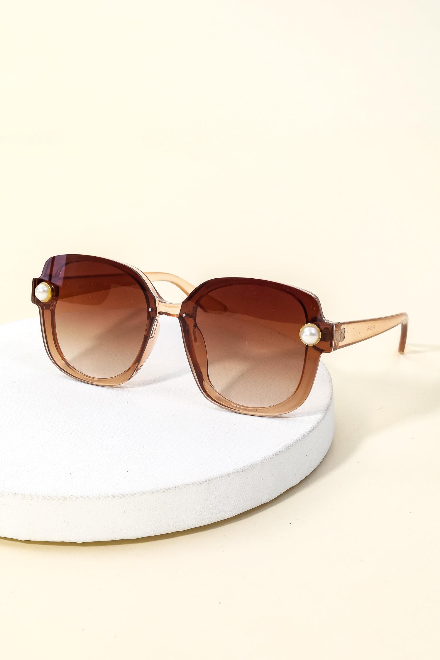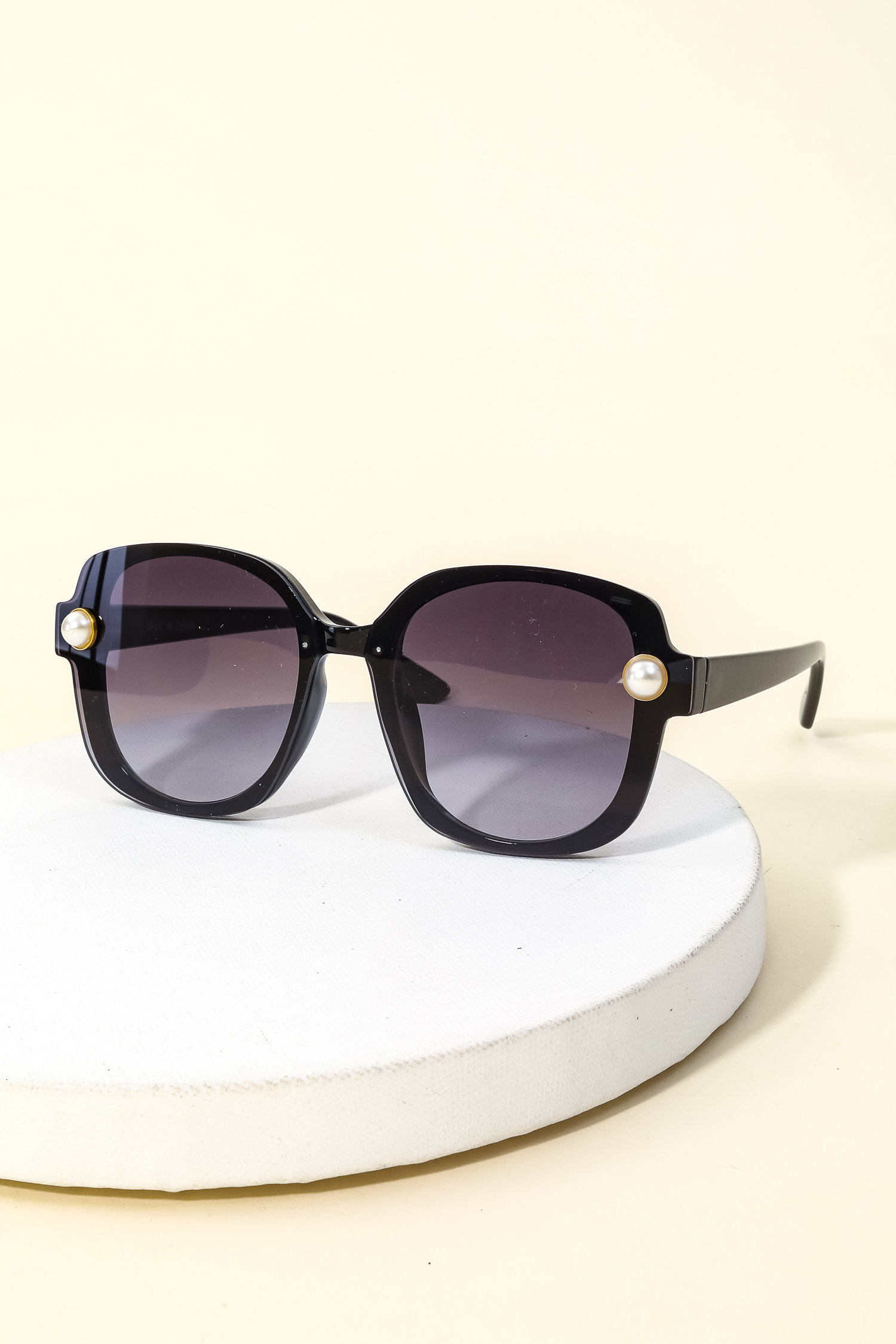 This new must have sunglasses made into a acetate shield frame pearl stud sunglasses design. Perfect for everyday wear.