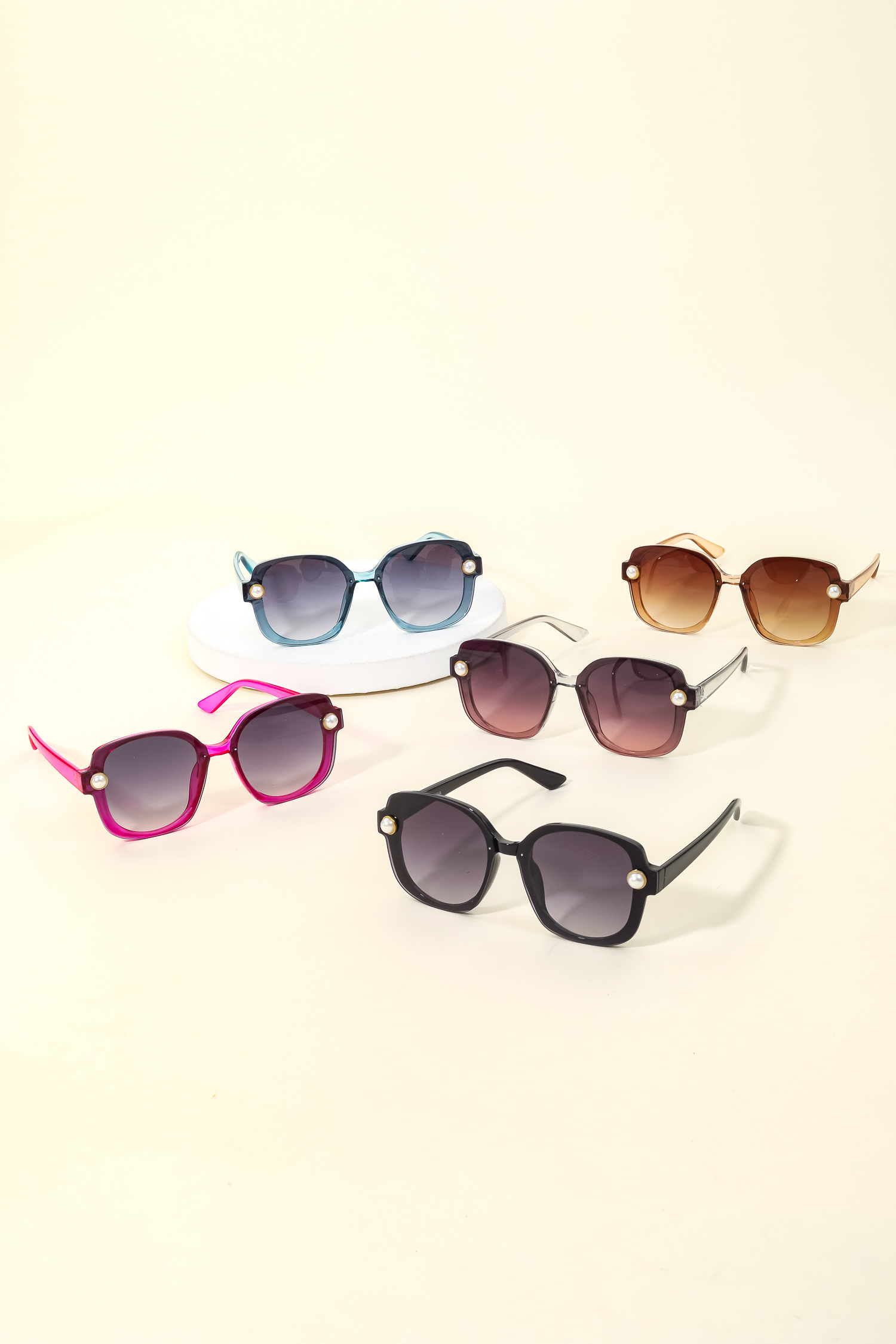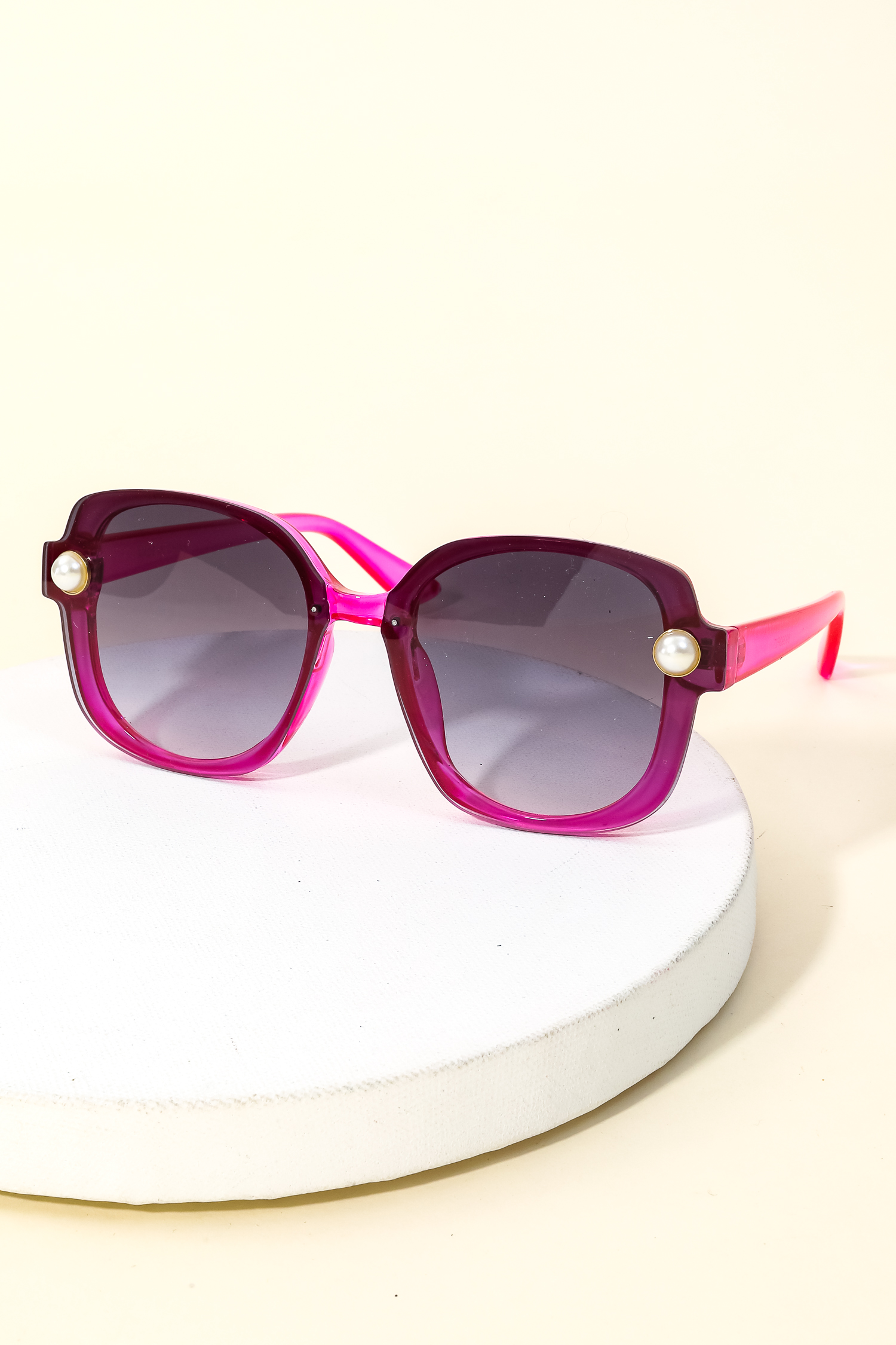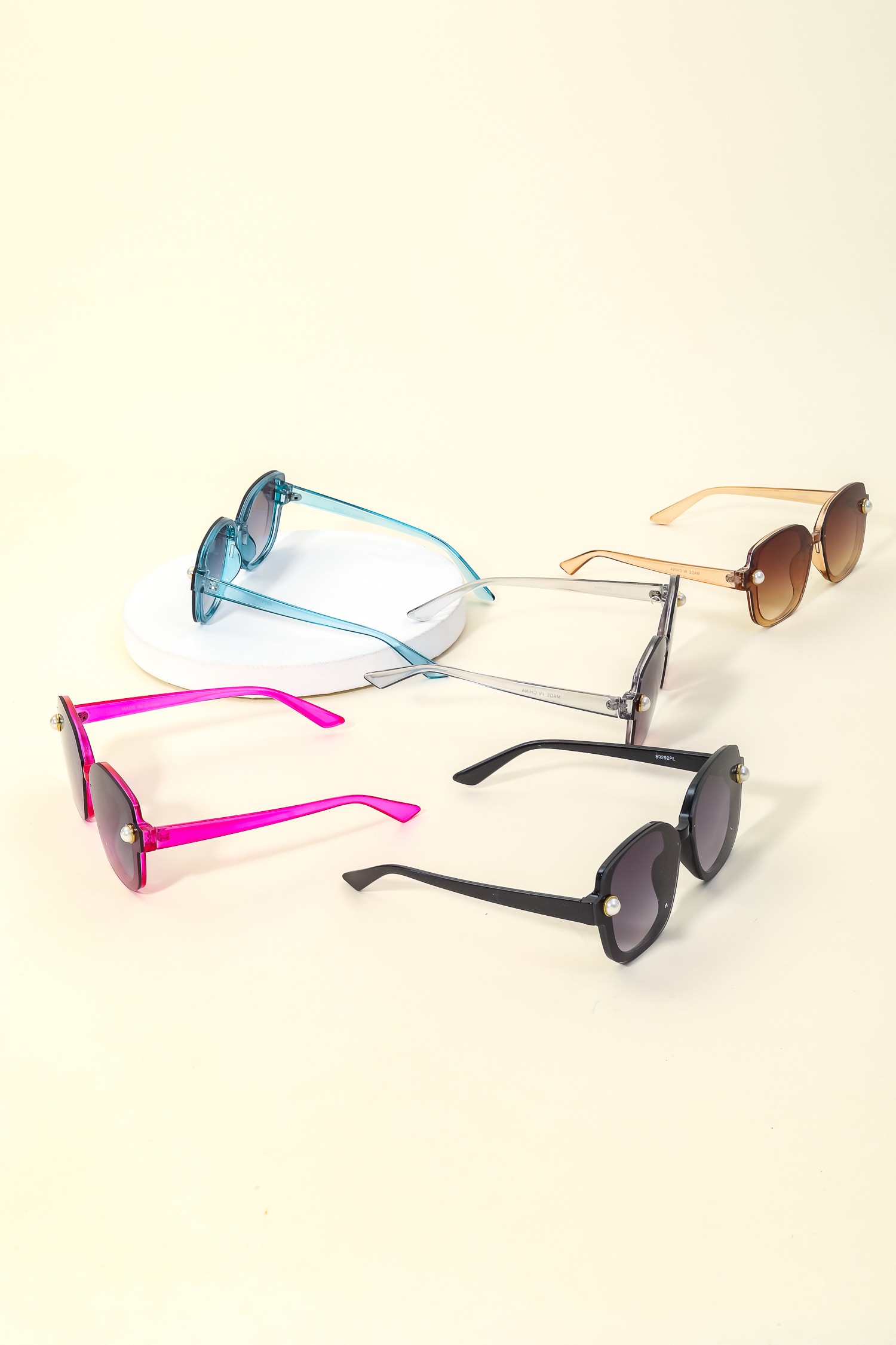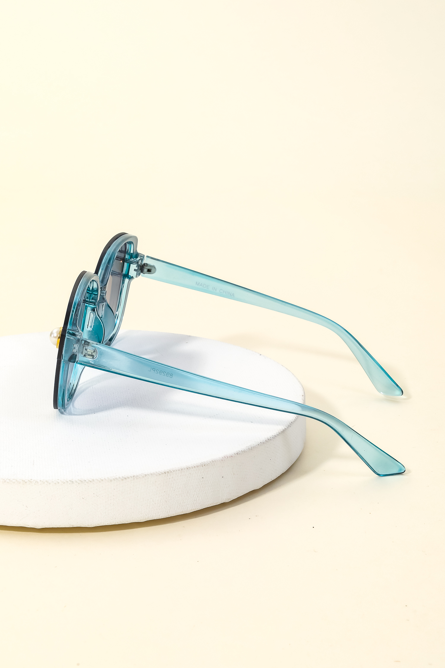 This new must have sunglasses made into a acetate shield frame pearl stud sunglasses design. Perfect for everyday wear.
