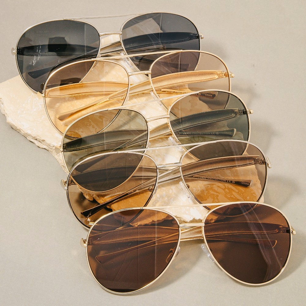 Effortlessly chic and sophisticated, this set of sunglasses brings a one-of-a-kind assorted metal frame aviator sunglasses set design. Unleash the potential of your wardrobe with this versatile set of sunglasses, ensuring a touch of elegance in every ensemble. Available in ASSORTED. This item is sold in packs of 12.