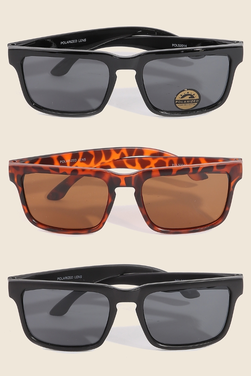 Bold and daring, this set of sunglasses displays a unique assorted polarized full frame sunglasses set design. A must-have set of sunglasses that adds a unique flair to any look. Available in Assorted. This item is sold in packs of 12.
