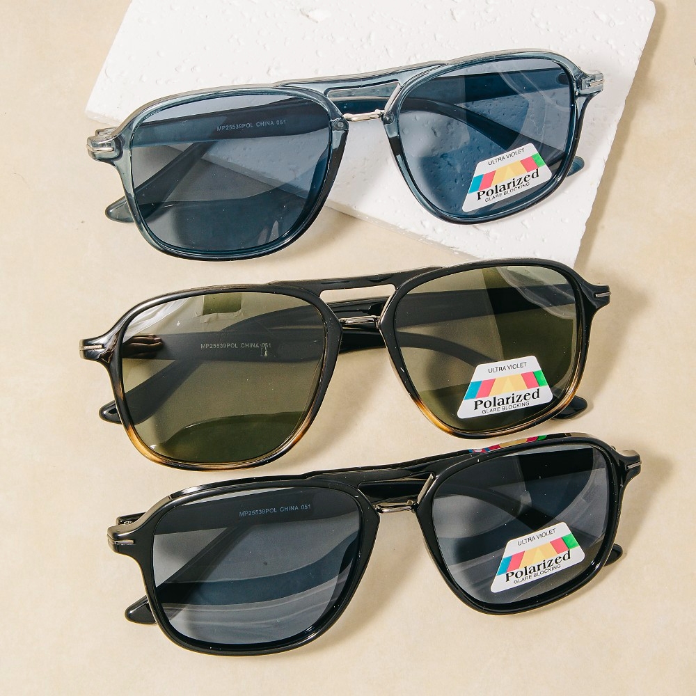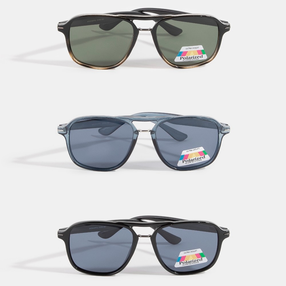 Effortlessly elevate your outfit, this set of sunglasses incorporates a flawless square double-bridge polarized sunglasses design. Add a touch of glamour to your wardrobe with this versatile set of sunglasses, perfect for enhancing the elegance of any look. This item is sold in packs of 12.