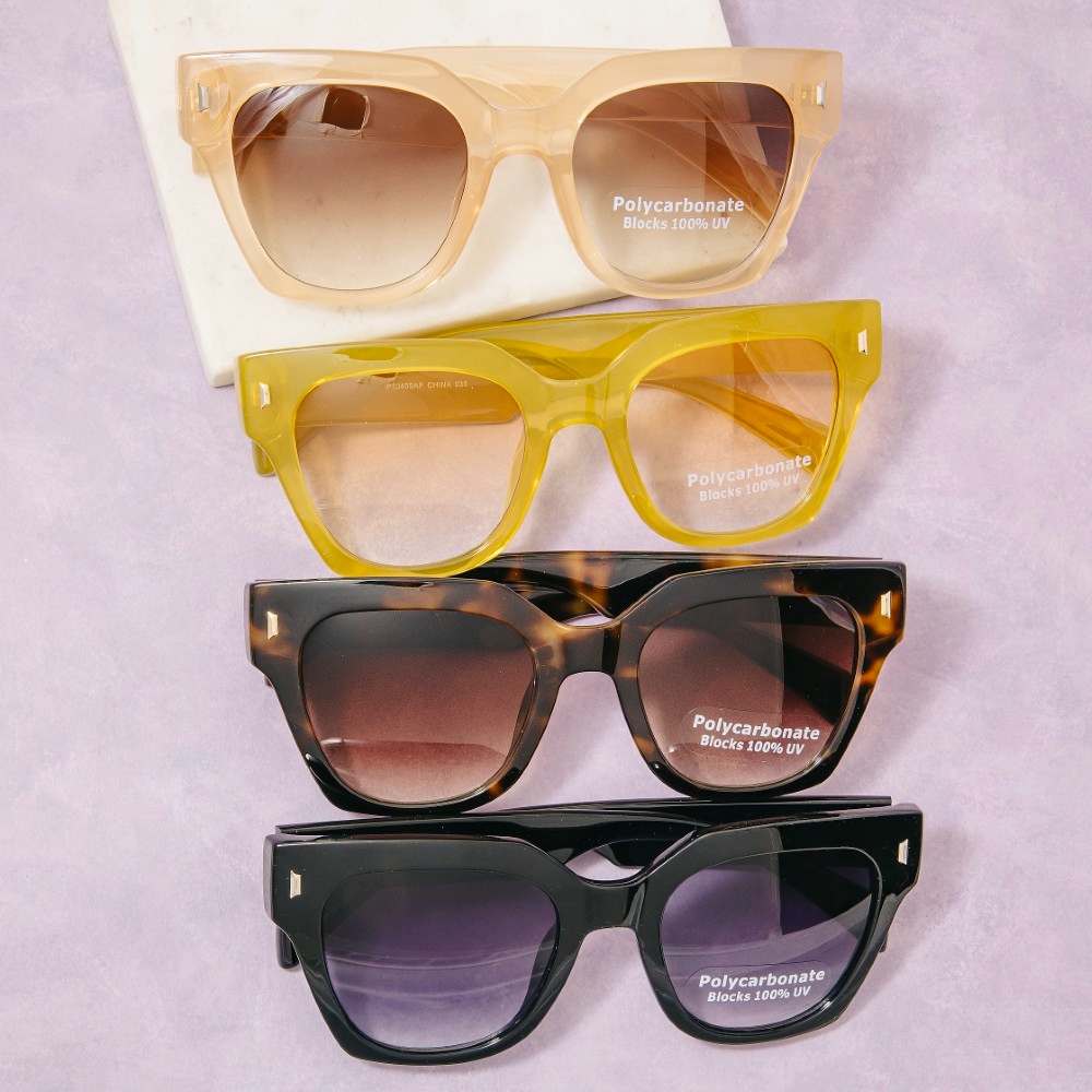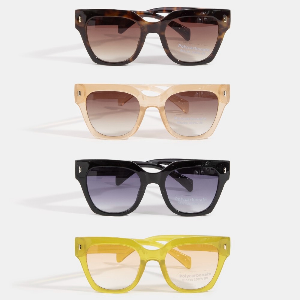 • A stunning piece that is sure to turn heads, this set of sunglasses displays a unique bold square sunglasses with metal corner detail design. Perfect for dressing up or down, this versatile set of sunglasses adds a touch of sophistication to any look. This item is sold in packs of 12.