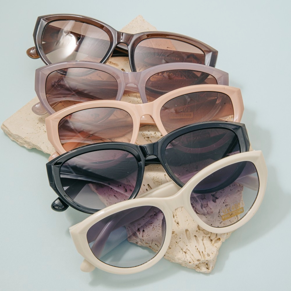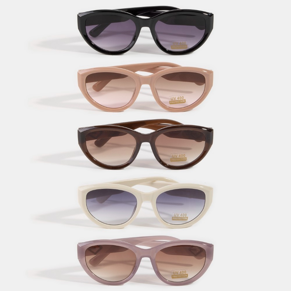 The perfect way to add some edge to your look, this set of sunglasses showcases an alluring chunky thick frame oval cat eye sunglasses design. This set of sunglasses is the perfect finishing touch to any outfit, adding a touch of sophistication and glamour. Available in ASSORTED. This item is sold in packs of 12.