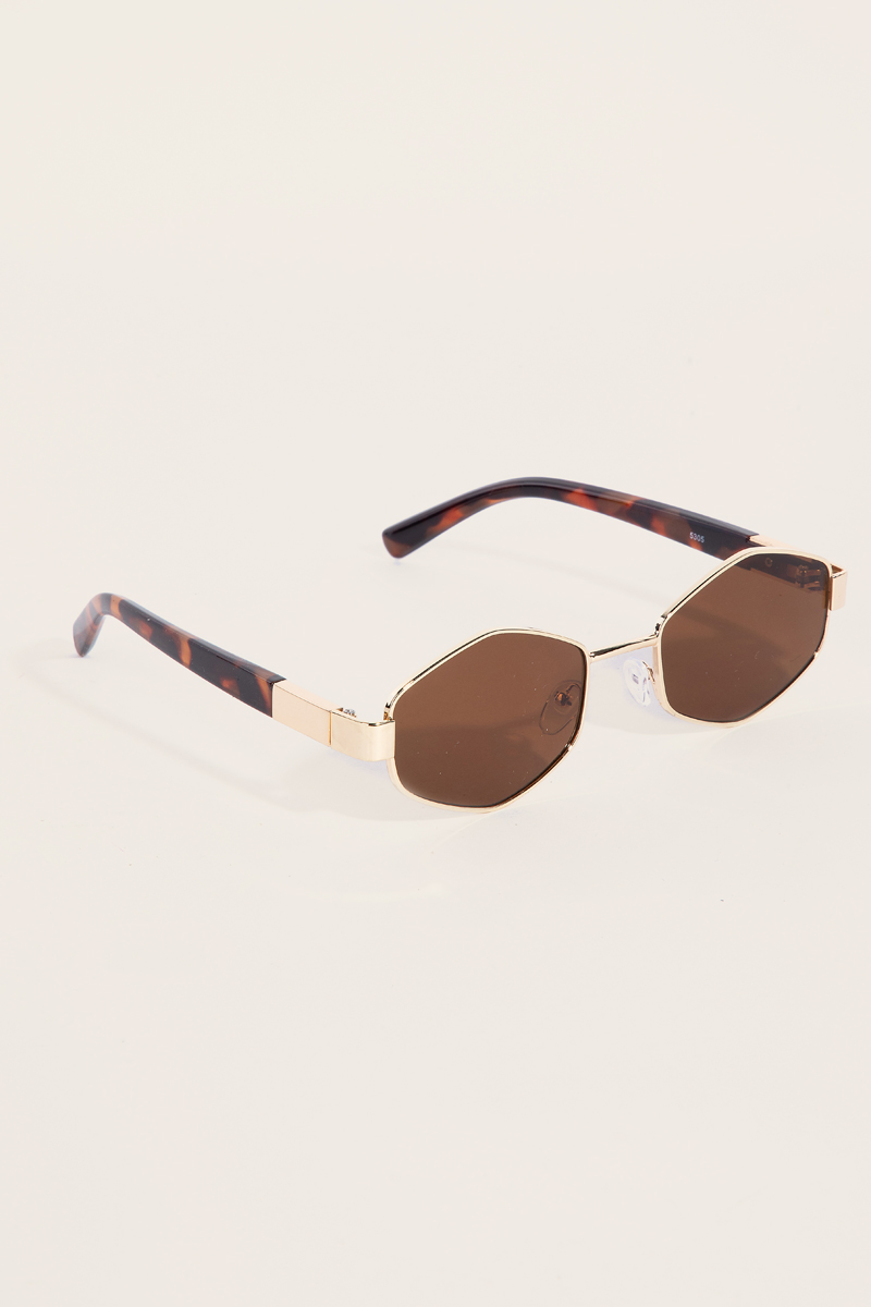Narrow Oval Lens Side Gold Detail Sunglasses Set