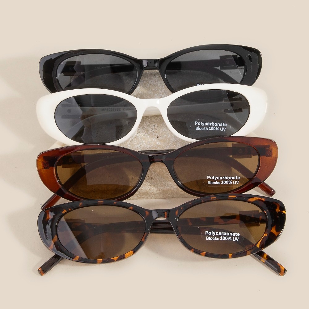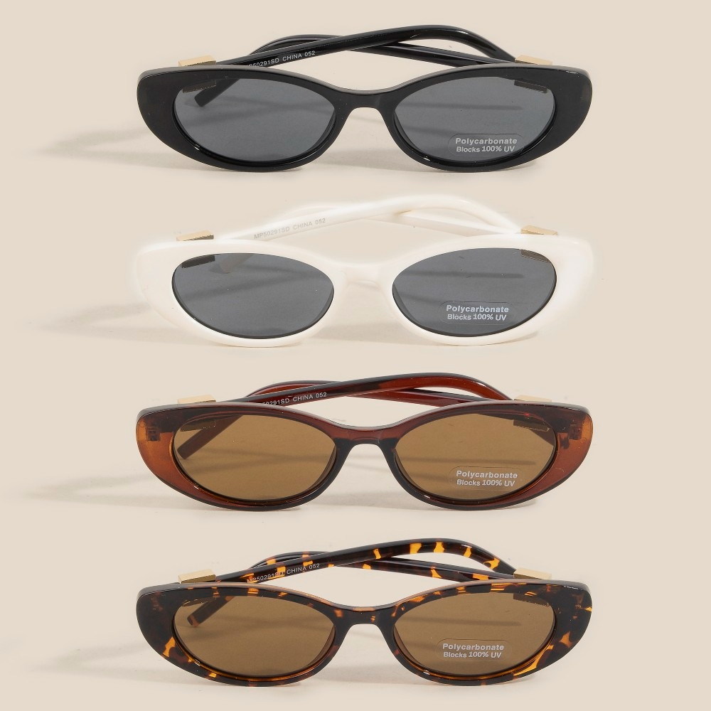 - Sleek and modern, this set of sunglasses contains a special metallic accent wide oval lens sunglasses set design. Transform your outfit from ordinary to extraordinary with the touch of elegance provided by this versatile set of sunglasses. Available in ASSORTED. This item is sold in packs of 12.